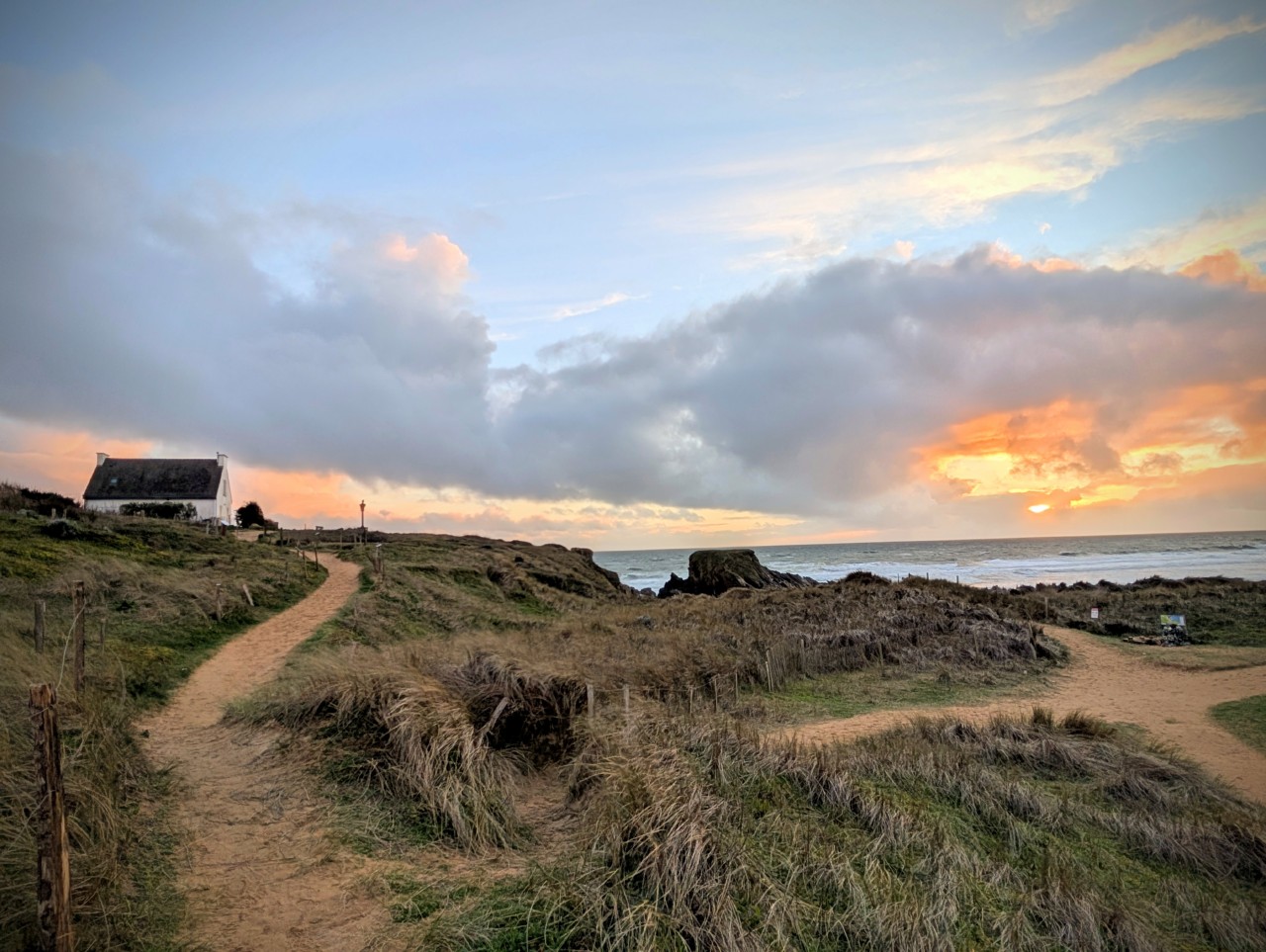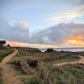 Ce n’était même pas un coucher de soleil en entier, et il y avait un vent à décorner des bœufs, mais c’était bien joli avec ces myriades de couleurs chatoyantes. Et ça me fait toujours du bien de renouer avec la plage de Bellangenet en cette fin d’hiver pluvieuse. Je plussoie