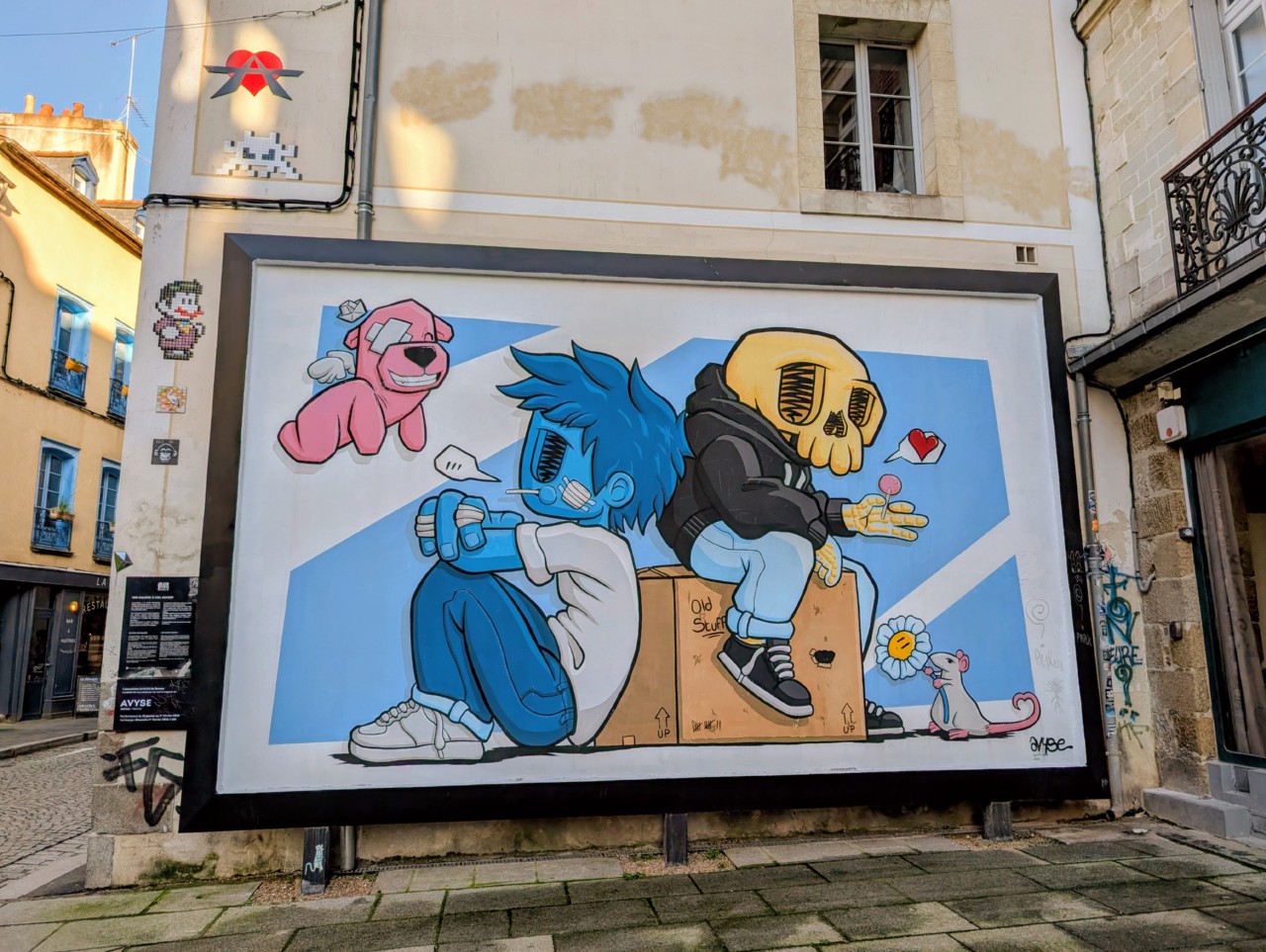Je vous ai beaucoup beaucoup montré les fresques et œuvres du Mur d’Oberkampf (j’ai malheureusement peu tagué les articles en question, donc je ne les retrouve pas laule), mais celui a fait bien des émules avec le temps, et à deux pas de chez nous il y a Le Mur d’ici qui propose aussi ses petites merveilles. Il s’agit de … Continuer la lecture Le Mur de Rennes (Avyse)