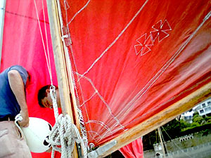 C’était très agréable, j’adore cette sensation de voguer et de se sentir flotter sur l’eau. En outre, c’est un véritable voilier bien traditionnel, tout en bois et sans moteur. J’aime bien cette idée d’obéir quelque peu aux aléas du vent et d’aller loin et vite, puis revenir à deux à l’heure lorsqu’il n’y a plus rien.