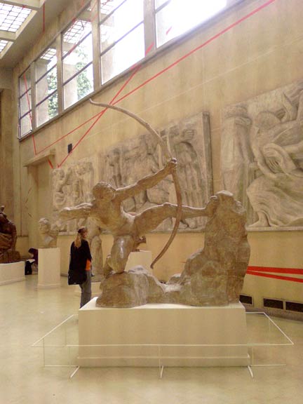 Mais cette visite fut l’occasion de connaître Bourdelle et son oeuvre. Le musée consiste une très belle bâtisse qui a subi des extensions intéressantes assez récemment, ainsi qu’un jardin très agréable. Le tout est agrémenté de kyrielles de sculptures de tous les genres, et plutôt de grandes tailles. En effet, il a beaucoup travaillé pour des monuments, des fontaines ou des façades de bâtiments. Mais même à des dimensions monumentales, certaines allégories m’ont frappé par la richesse de leurs attitudes et par l’expression de leurs traits. Ainsi « L’Eloquence » qui trône dans le jardin (qu’on regarde forcément de très bas, vu sa taille) a un visage extraordinaire dont émane une singulière dignité.