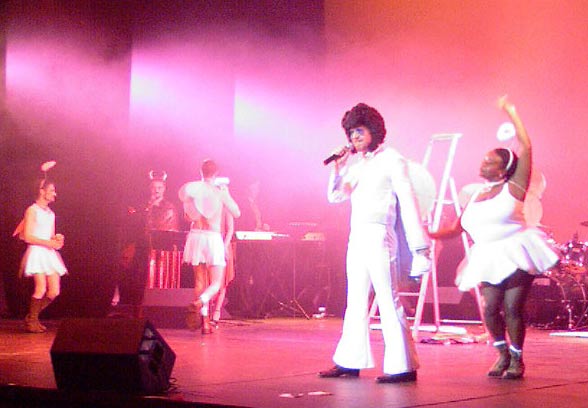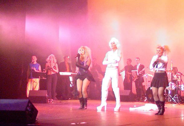 Gertrüd et son compagnon ont donc présenté avec un certain panache cette 14ème édition de l’Eurovartovision devant une foule de tapettes extatiques. Les vidéos qui présentaient les groupes étaient tellement minables que c’en était pétant de rire, quand le vidéoprojecteur daignait fonctionner pendant plus de 21 secondes. Ensuite les groupes présentaient des performances d’un niveau tout à fait cohérent avec l’Eurovision. Donc drôles, parfois ridicules, pleines de créativité et de bon esprit, mais surtout d’un énième degré qui décoiffait carrément. Et les commentaires décalés et queerissimes de Gertrüd amélioraient encore l’effet hilarant des numéros.