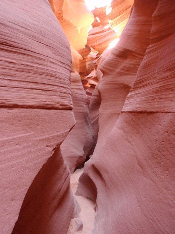En revanche, la faille supérieure est bien souvent plus évasée, et donc l’atmosphère est moins tamisée, moins propice aux photos. Mais on obtient de superbes nuances de couleurs lumineuses dans ce grès navajo (du sable pétrifié en fait, c’est pourquoi il s’érode si facilement) si typique de tous les sites visités lors de ce voyage.