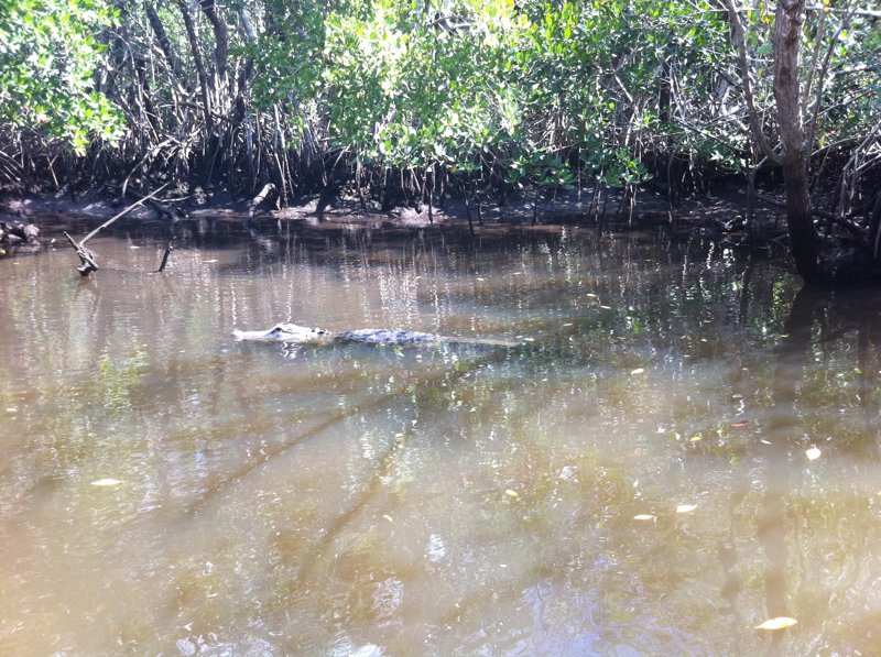 Et sinon cette balade dans la mangrove nous a montré de plus près les palétuviers qui pullulent incroyablement dans cette eau salée, et qui filtrent le sel en le fixant dans des feuilles sacrifiées. Ces feuilles se décomposent dans l’eau et donnent cette couleur jaunâtre à la rivière. On retrouve aussi des alligators également en balade…