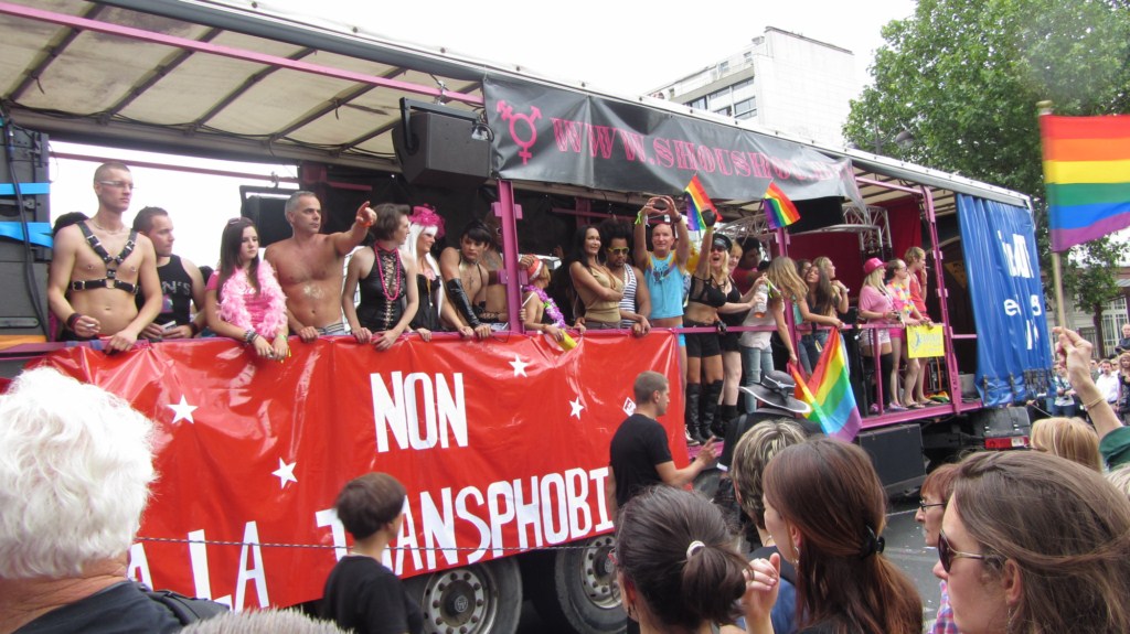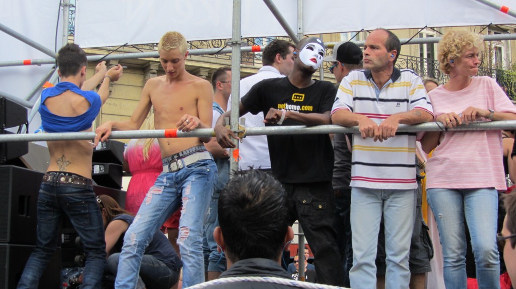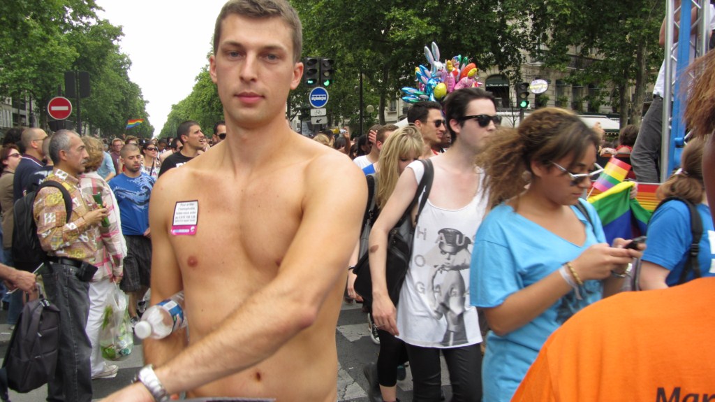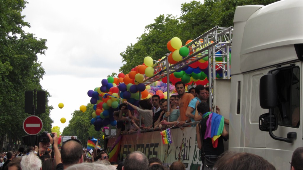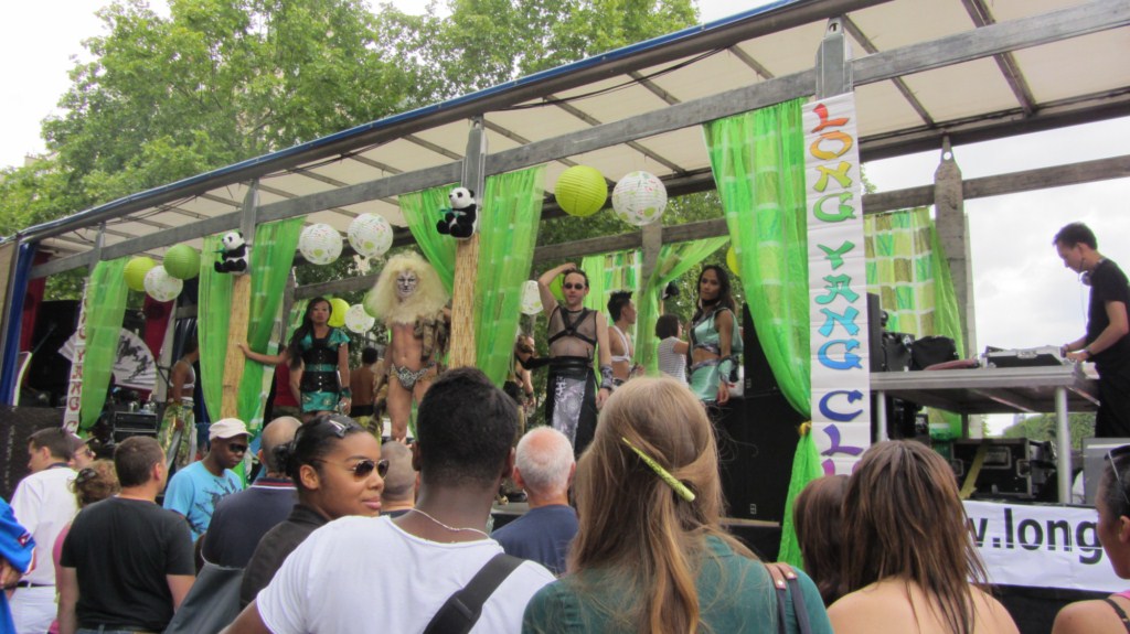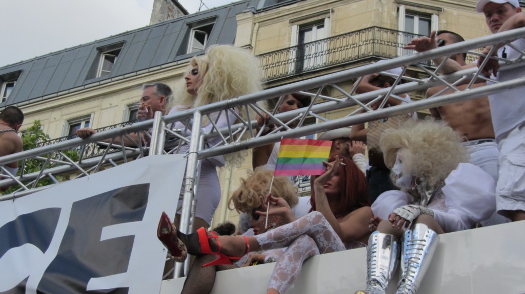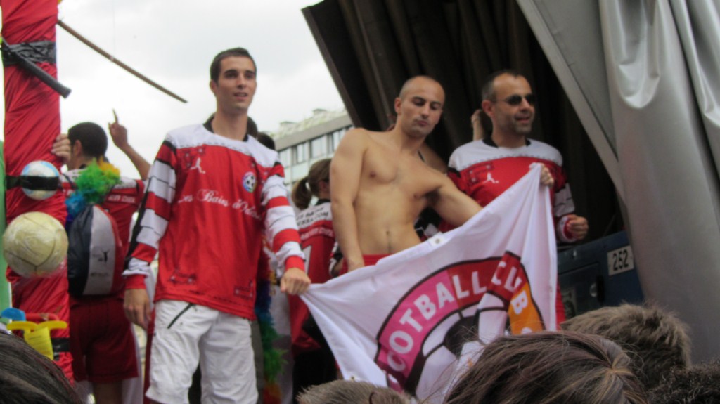 J’ai été un peu déçu qu’il y ait si peu de chars festifs et derrière lesquels faire la fête. A part cette année Têtu, la FSGL (Fédération Sportive LGBT) ou le Spyce, sinon c’était très calme… Et le seul char qui m’a rappelé mes vertes années de Gay Pride endiablée avec toutes les boites et bars de nuit qui défilaient (Queen, Scorp, Pulp, Scream, Open Café, Cox, etc.) était celui du Spyce qui avait mis les moyens et les « hommes ».