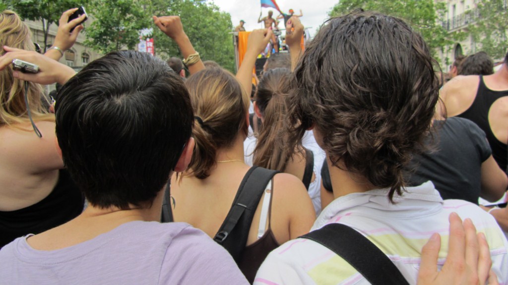 Une Marche des Fiertés de plus dans mon escarcelle, et quelques centaines de clichés, quelques dizaines de potes et copines croisés ou avec lesquels j’ai défilé, quelques chars et jolis garçons, jolies filles et jolis… heu… gens ! Je lis comme tout le monde avec étonnement mais un rien blasé les statistiques de la préfecture. Nous étions clairement plus de 36 000 dans les rues de Paris hier pour cette édition 2011 de la Gay Pride, en revanche j’ai remarqué qu’il y avait moins de monde que l’année précédente, mais aussi moins de chars, et globalement une « petite » Gay Pride. Donc 500 000 non, mais raisonnablement je pense qu’on pouvait tabler sur 100 000 à 200 000 personnes. Moktoipas propose une solution plus scientifique pour indiquer plutôt dans les 130 000 personnes ! Il s’agissait aussi d’une marche que j’ai sentie plus politique et militante, puisqu’il ne faut pas oublier que c’est aussi une des facettes majeures de cette manifestation. D’ailleurs cette chère Arielle Dombasle, marraine de cette année, nous le dit clairement : « On va gagner ».