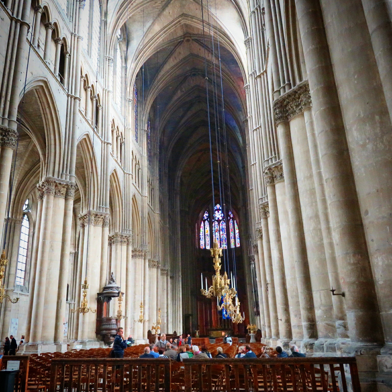 L’extérieur est vraiment magnifique, même si en l’occurrence, il faudra revenir quand les échafaudages seront ôtés. L’intérieur est un petit peu décevant car assez sombre et dépouillé, malgré quelques jolis vitraux. Pour l’église qui a vu passé autant de baptêmes et de couronnements de rois de France, c’est assez étonnant.