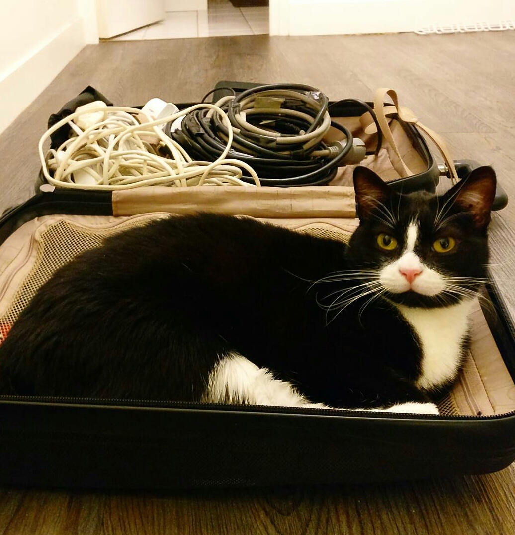 Comment résister à une valise ouverte ?? Du coup, pour une fois, elle n’est pas sur moi toute la soirée. ;))