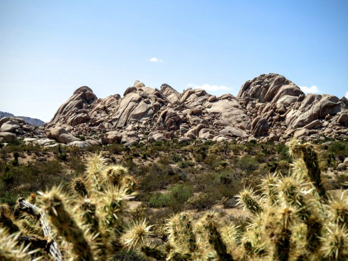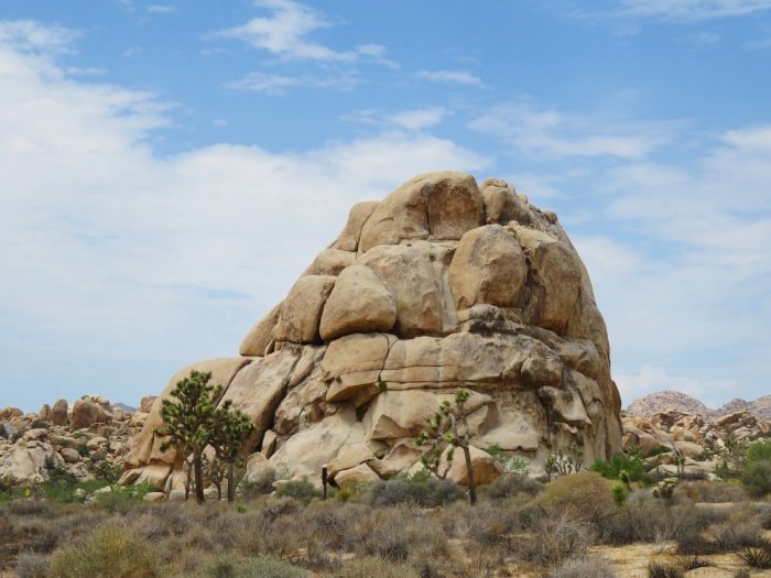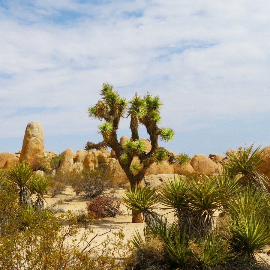 Notre premier parc national du voyage !! On savait qu’il s’agissait plutôt d’un « mineur », mais qui me tenait à coeur car j’aime beaucoup ces Joshua Trees qui sont des sortes de yuccas qui poussent dans le désert. Ils forment de véritables forêts dans les zones arides, et c’est vrai que leurs « bras » leur donne un air anthropomorphe très particulier. Le parc est donc largement consacré à ces plantes, dans un très beau décor « Far West » avec une représentation assez riche des différents types de paysages qu’on allait trouver dans tout le voyage. Le mélange est très agréable avec des concrétions rocheuses, des érosions curieuses aux formes suggestives, et tous les types d’environnements désertiques.