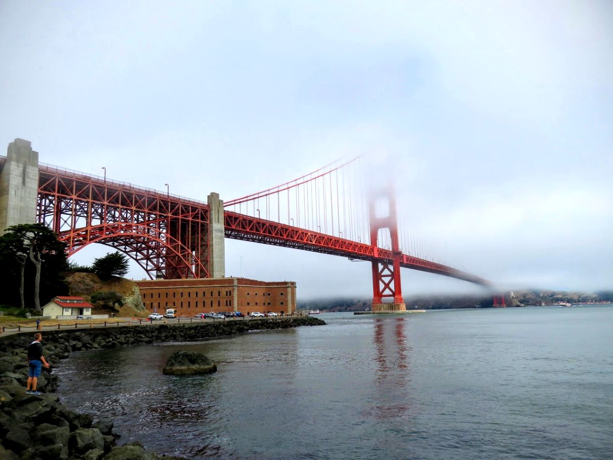 C’était l’arrivée et le départ du voyage, avec un petit pincement au coeur pour cette ville qui résonne de tant de références pour nous (et particulièrement hitchcockiennes pour mon chérichou). J’aime toujours autant me promener dans ses rues de San Francisco pentues, ses parcs et ses maisons victoriennes, son Palace of fine Arts, et autour de son emblématique Golden Gate Bridge… Bon évidemment, le beau temps n’est jamais garanti et je vous mets la photo idéale du Golden Gate, c’est dire !!
