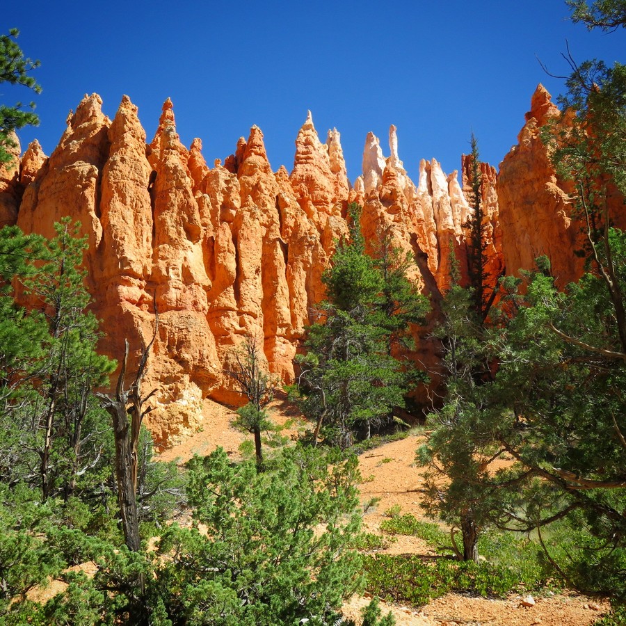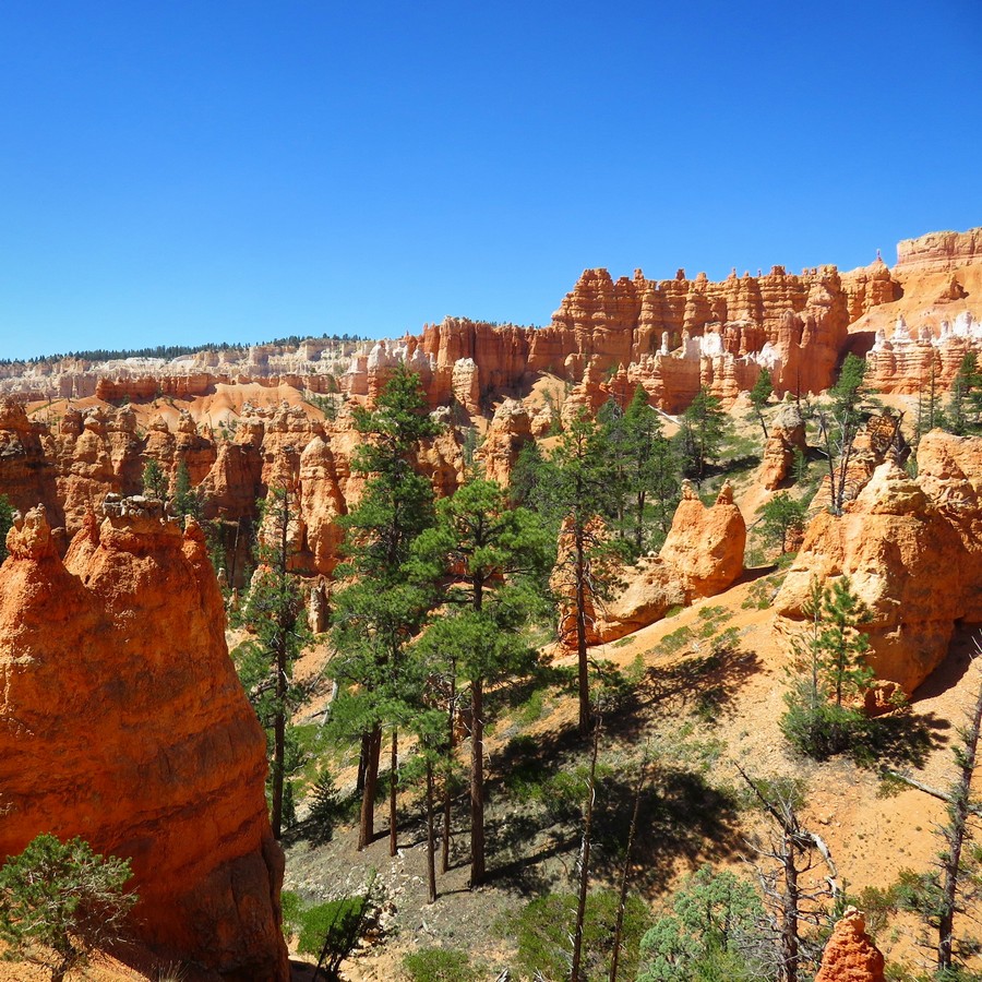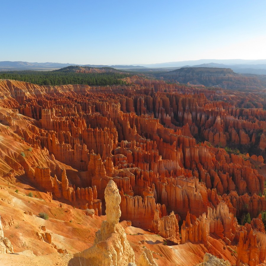Ah Bryce !! Sans doute ce qu’il y a de plus beau dans ce sud-ouest américain. Mais comme je le précisais plus haut, c’est également le pire endroit pour la concentration touristique. Là certains parkings étaient carrément fermés à 10h du matin car saturé, et il fallait forcément prendre des bus (blindés aussi) pour faire la route panoramique. Mais on a bien compris, et les deux autres jours, on s’est levé aux aurores pour profiter d’un lever de soleil qui voit rougir Bryce, et d’une promenade au sein des hoodoos (les « cheminées de fées », ces colonnes de pierre de plusieurs dizaines de mètres de haut résultant d’une forte érosion). Bryce vaut par sa beauté mais aussi par la taille gigantesque de ses paysages, on a souvent du mal à croire à une telle oeuvre de la nature.