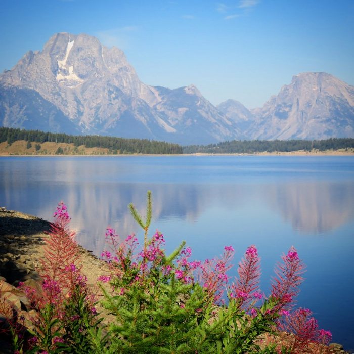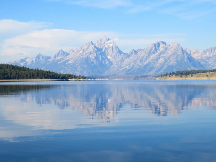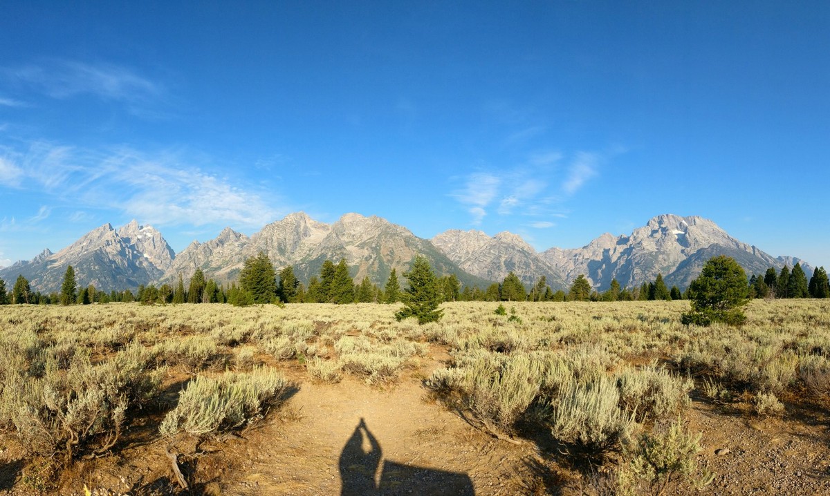 Après pas mal d’heures de route pour traverser tout l’Utah en passant par Salt Lake City, on gagne le Wyoming et une grande zone dont le parc de Grand Teton est l’antichambre de Yellowstone (qui déborde même sur le Montana). Grand Teton est avant tout une chaîne de montagnes assez jolies, et c’est une ambiance toute alpestre qu’on retrouve là. Du coup ce n’est pas exceptionnel pour des gens qui connaissent bien les Alpes ou les Pyrénées (car ce sont des massifs également d’une grande beauté). Mais les pics de Grand Teton, ainsi que la flore et la faune sauvage, font que l’on bénéficie de paysages ravissants, et d’une nature très vivante (qui contraste avec les terres arides précédentes bien évidemment).
