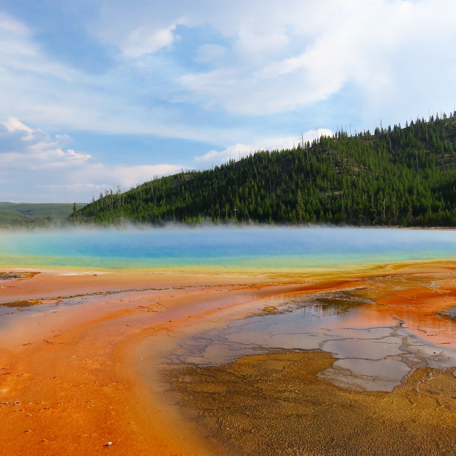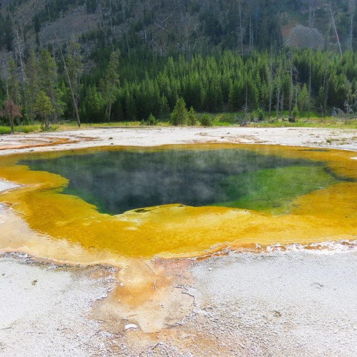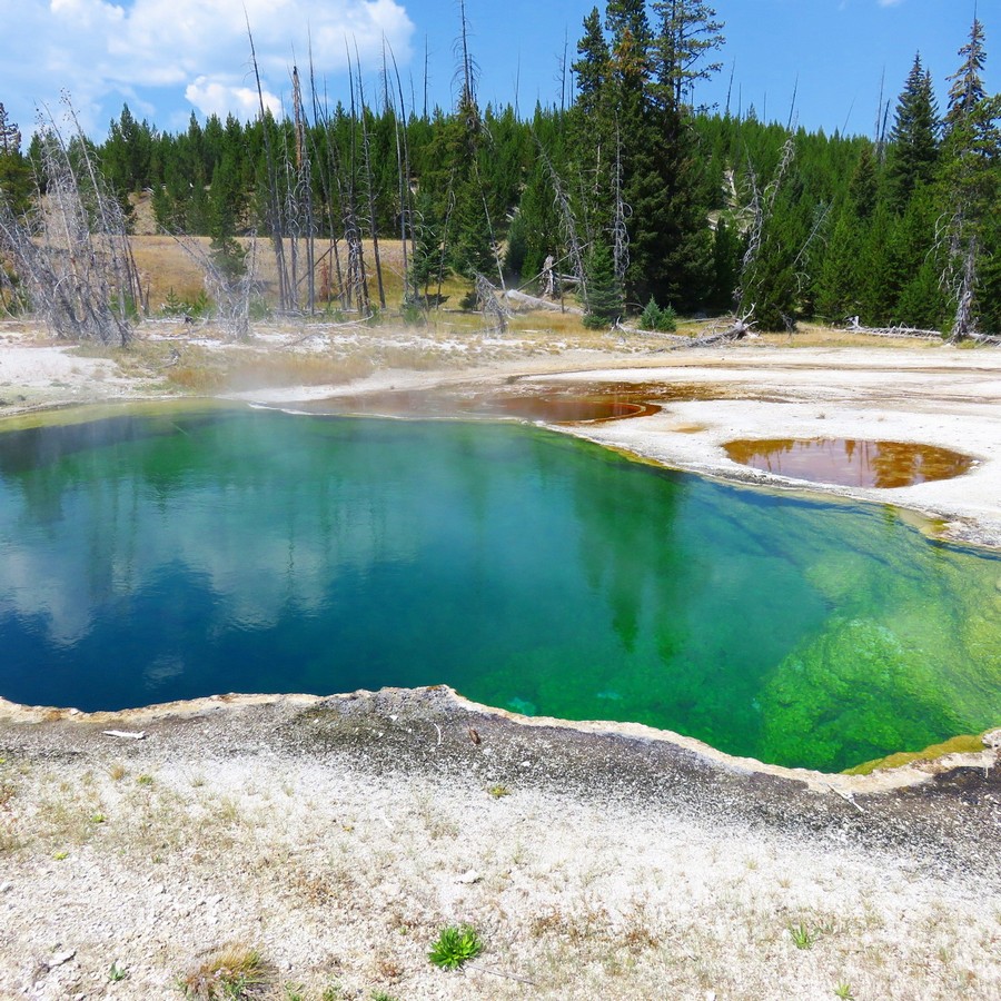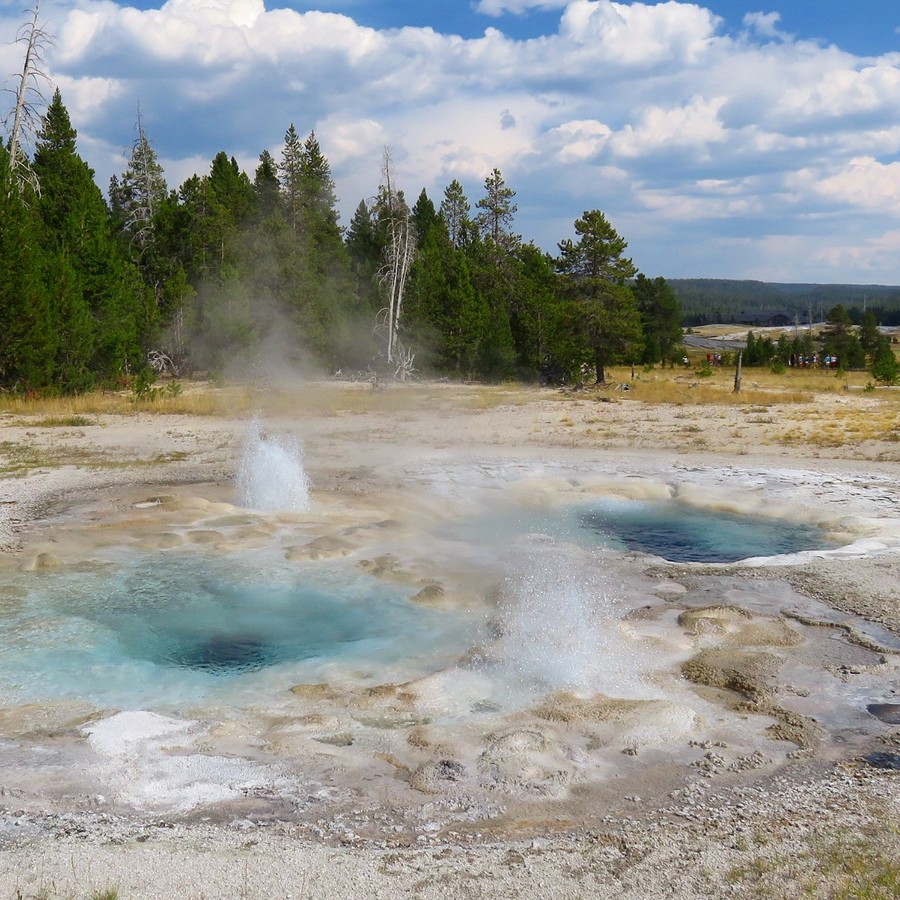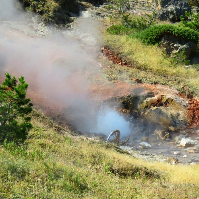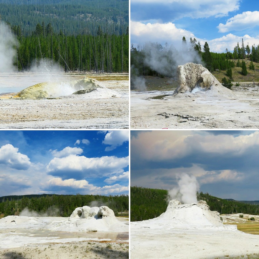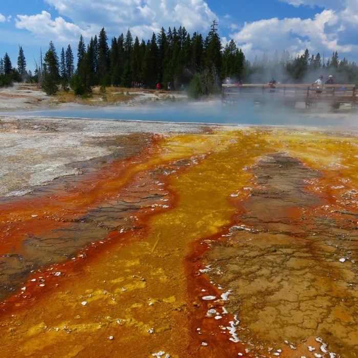 Il y a des centaines de geysers, de lacs d’acide ou d’autres composants colorés, de sources fumantes et brûlantes, de boues clapotantes, de fumerolles de toutes les couleurs et aux odeurs sulfureuses etc. Il faut marcher des heures et des heures pour tout voir, et c’est un bonheur de chaque instant. On connait évidemment l’Old Faithful mais il en dévient anecdotique devant la profusion des phénomènes alentours.