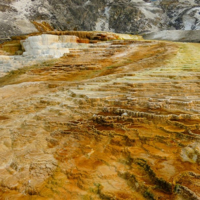 La grosse claque dans la tronche, et on s’en doutait bien, c’est clairement ce parc de Yellowstone à qui nous avons consacré quatre jours pleins. Eh bien c’était le minimum du minimum, cela nous a juste permis de faire un tour complet et de voir « ce qu’il y avait à voir ». Mais c’est très frustrant, et on n’attend qu’une chose c’est d’y retourner 15 bons jours pour marcher, et vraiment s’imprégner de toutes ses merveilles. Il s’agit bien d’un méga-volcan et on se balade gentiment au sein d’une caldeira dont les explosions ont dû à une époque avoir une influence sur le climat mondial. On pensait surtout aux spectacles géologiques du parc, mais on a trouvé bien plus, avec déjà un délire de particularités géologiques. On avait bien vu quelques geysers au Chili, mais là c’est sans commune mesure.