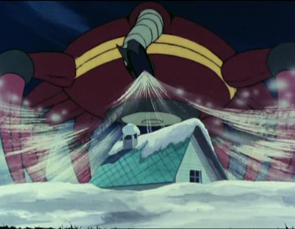 Alors qu’elle tombe raide moribonde dans la neige, Hydargos lui envoie Golgoth 12 pour terminer le boulot. Heureusement Actarus vient à sa rescousse, et il lui balance une grande claque dans la gueule pour la raisonner. Mais oui bien sûr.