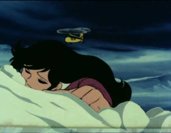 Nous avons droit à une première séquence surréaliste dont les dialogues sont juste incroyables… D’abord Alcor qui secoue violemment la gamine subclaquante pour qu’elle raconte ce qu’elle sait. Ensuite, on doit l’opérer, mais elle va surement mourir, et de toute façon affirme le chirurgien « si elle ne veut pas vivre elle mourra […] un chirurgien a besoin de l’aide de son malade pour réussir ». Et Actarus qui en une seconde est d’accord pour la charcuter au vu de ces arguments extraordinairement convaincants.