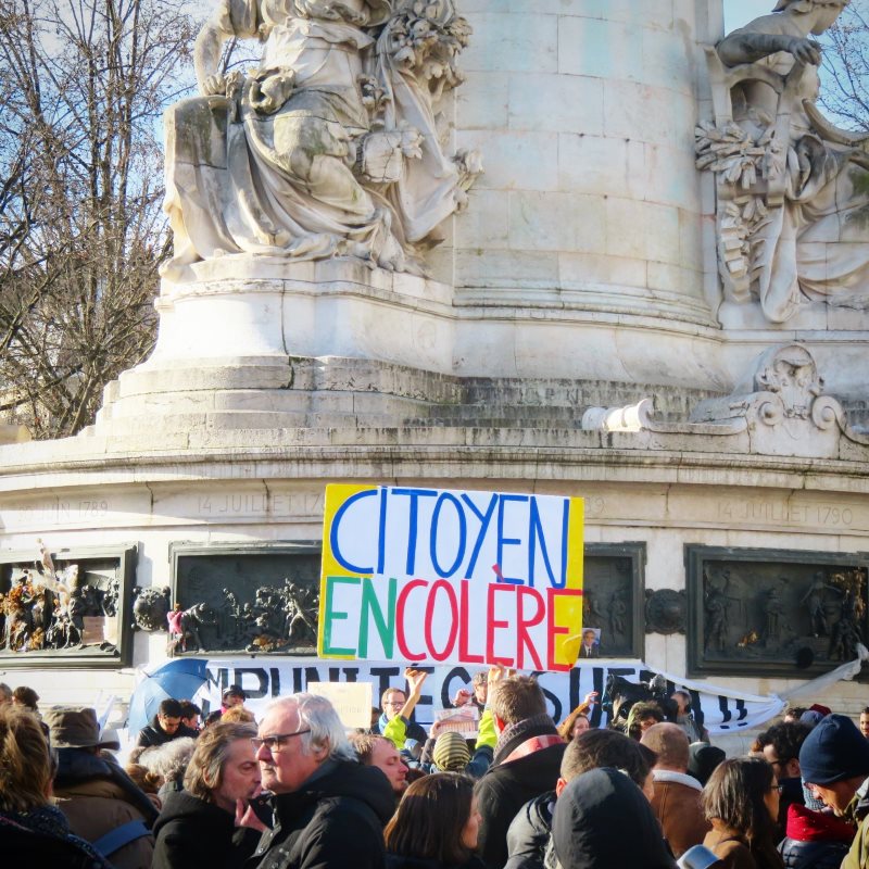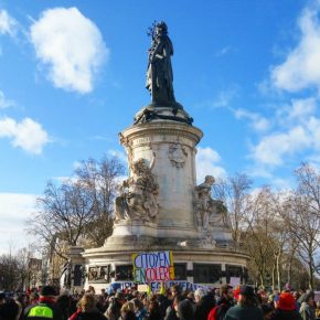 Je suis allé le dimanche 5 mars à République pour me mêler à un chouette concert de casseroles. Malheureusement pas grand monde, mais très bonne ambiance, et je suis toujours content de voir que cela ramène une foule ultra bigarrée. Il y avait tous les âges, genres, styles, et ustensiles métalliques sur lesquels ça y allait très fort ! En pensant à l’autre manif au Trocadéro au même moment, je me suis senti bien rasséréné par ce concert de casseroles en écho.