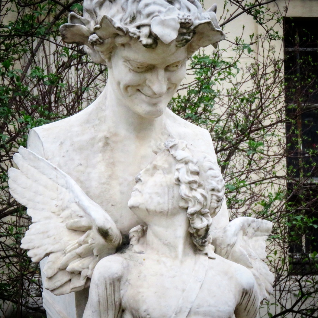 Voilà l’Amour captif de Félix Sanzel qui se trouve dans le Jardin des Plantes (Paris 5ème). L’oeuvre est plutôt de bonne facture, mais est assez dingue dans la représentation ultra perverse du bonhomme du dessus, avec l’expression soumise et craintive du petit angelot en bas. Mouahahahaha.