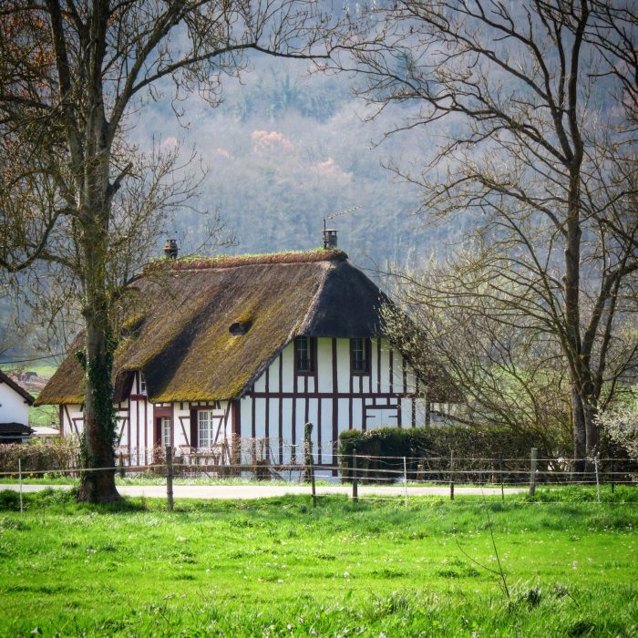 Evreux n’est pas une grande ville, et on a même encore des champs cultivés à l’intérieur de la ville. Et à quelques encablures, dans la vallée de l’Iton, il y a le village où ma cousine et sa petite famille ont posé leurs valises il y a quelques années. 355 habitants, ça me rappelle petit Berville du Vexin Français ! Mais là évidemment le style architectural local ne trompe pas, on est bien en Normandie.