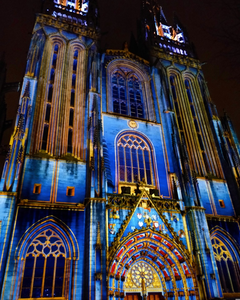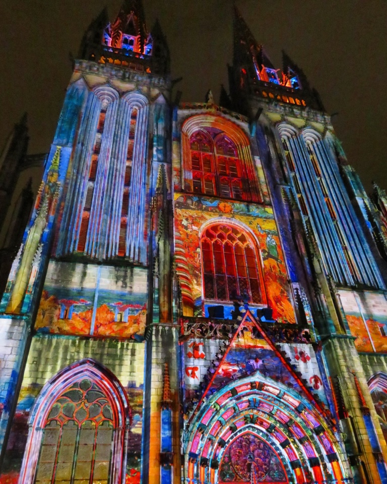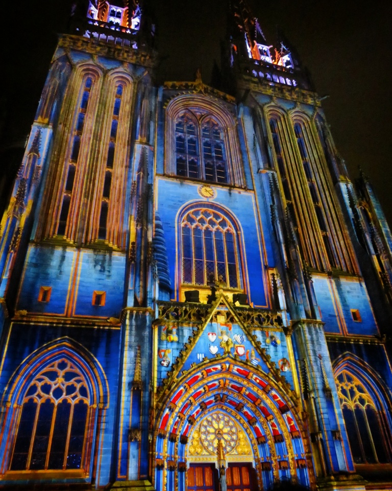 Et une cathédrale de plus dans mon escarcelle, avec show estival et light-mapping !!! Voilà la superbe cathédrale Saint Corentin de Quimper en granite.