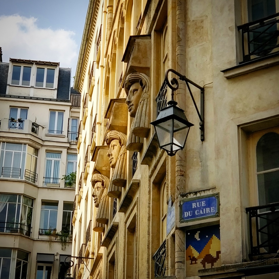 J’adore cette place égyptomaniaque qui rappelle les conquêtes et voyages napoléoniens au 19e siècle, et donc surtout cette façade aux têtes de déesses Hathor.