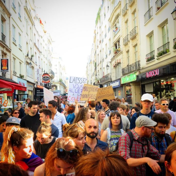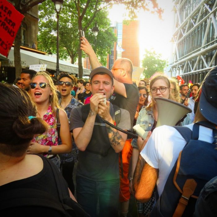 En effet, cette petite manif nocturne rassemble un peu plus d’outcast (pfff encore un mot anglais je sais) que d’habitude, et les slogans fusent, c’est à la fois festif et politique.