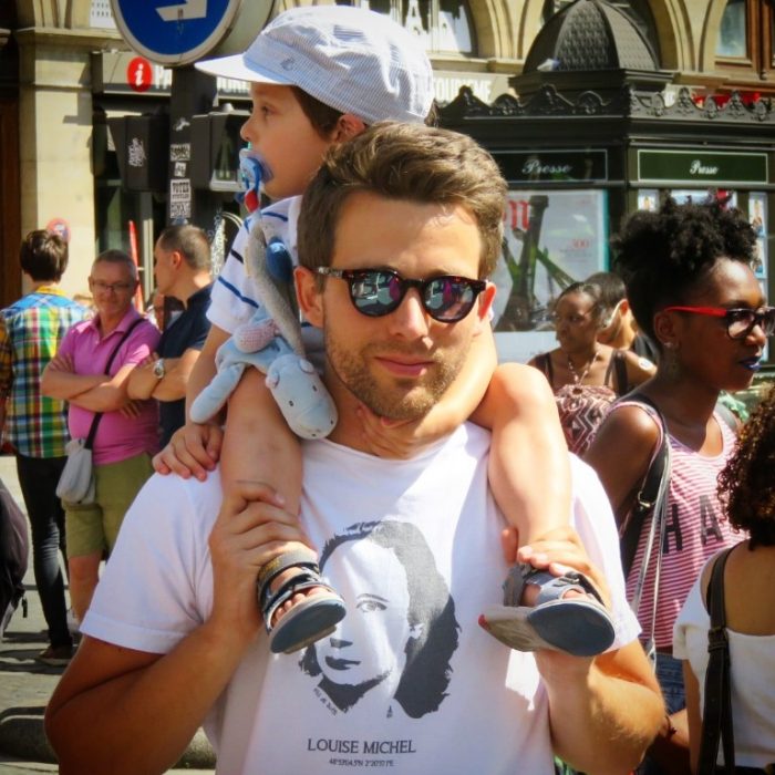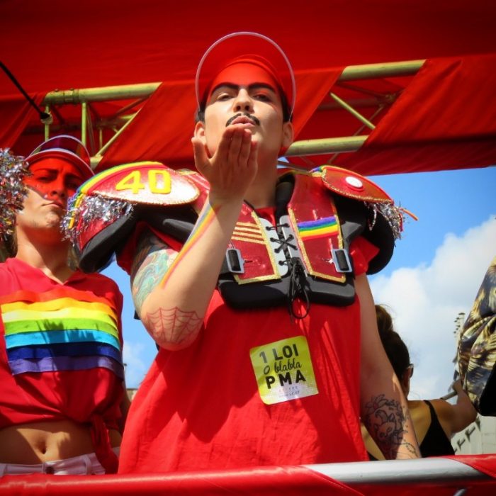 Et bien évidemment, j’ai participé à la Gay Pride parisienne. J’y tenais particulièrement car ma première c’était en 1997, donc cela faisait mes vingt ans de marche des fiertés, ce n’est pas rien !! J’ai aimé y voir du monde, plein plein de monde, des jeunes, des vieux, du degré de follitude et d’extraversion de 0 à l’∞, des filles et des garçons et tous les degrés entre les deux ou en-dessous ou au-dessus, des hétéros, des homos, des trans, des pan-poly-a-inter-cequetuveux, des gaminEs, des bears, des otters, des chubbies, des puppies, des cuirettes, des slaves en cuir et latex, des amis, des potes, des cousins, des connaissances, des accointances, des satellites, des perdus de vue, des connus de vue, des ex, des plans cul, des militantEs, des gens qui dansent, qui défilent, qui crient, qui chantent, qui se taisent pendant une minutes.