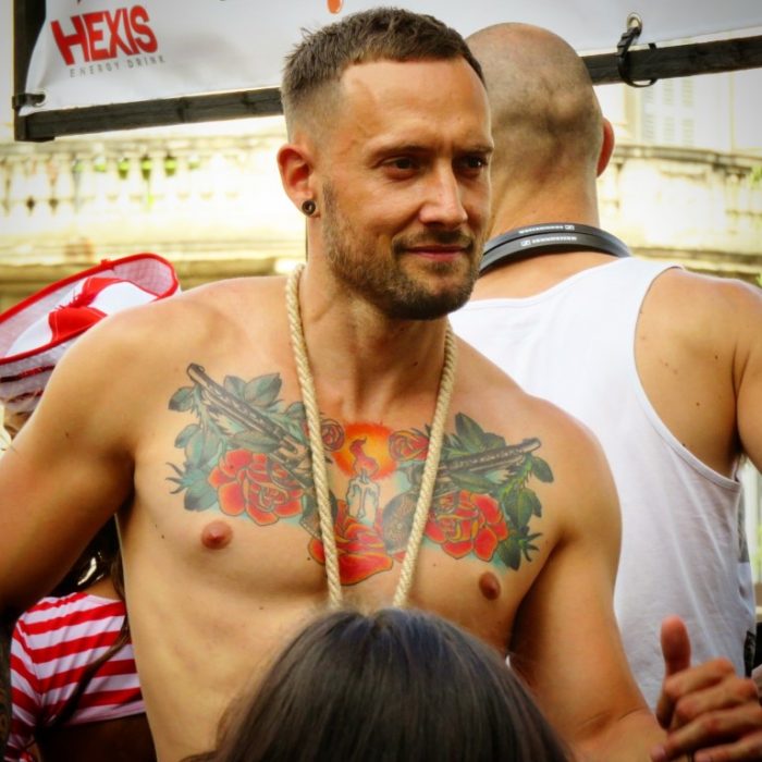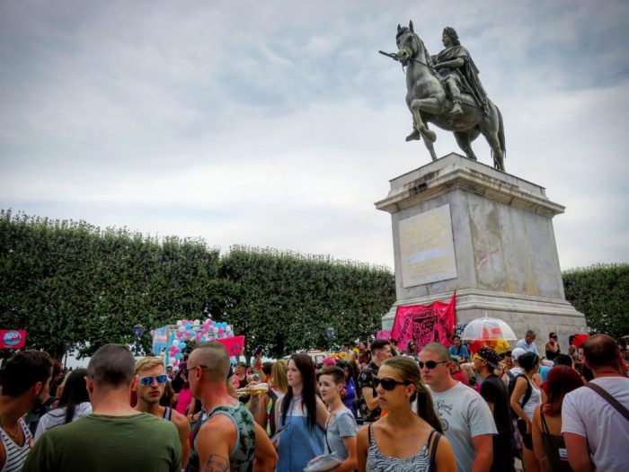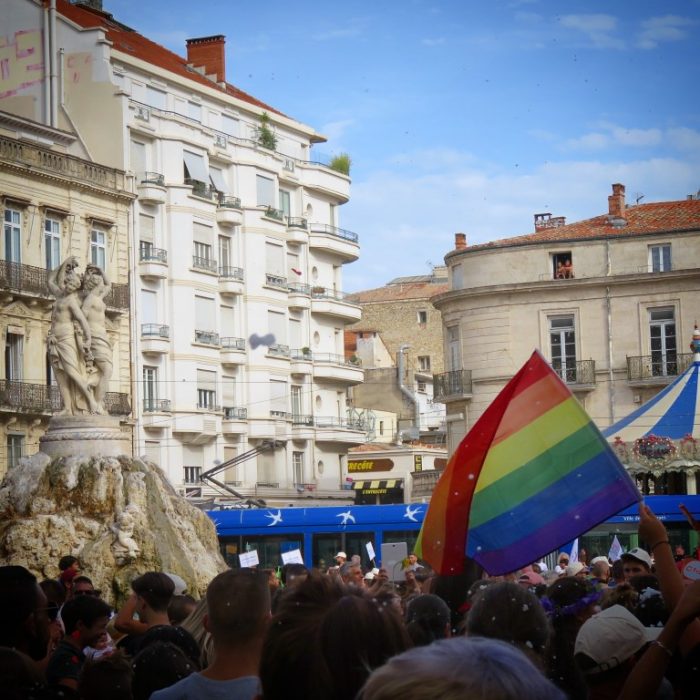 Et puis, cette année la grande nouveauté c’était le week-end à Montpellier pour voir ce que ça donne une Gay Pride 2017 réussie en dehors de Paris. Je connaissais bien quelques Prides européennes mais j’ai rarement eu l’occasion d’en faire une en dehors de la capitale. Montpellier était clairement le bon choix, étant donné que selon moi c’est la seconde ville gay de France après Paris. Il y avait du monde, il y avait du fun et du soleil ! Evidemment ce n’est pas un mouvement aussi impressionnant qu’à Paris, mais la manifestation a d’autant plus d’importance dans un endroit où vivre queer n’est pas aussi facile qu’à Paris (déjà que ce n’est pas toujours facile ici). On y retrouve un échantillon de tout ce que j’ai précédemment cité, et plus encore !! On est allé jusqu’au bout du trip puisqu’on est allé à la soirée officielle djayée par un DJ Kingstone qu’on a particulièrement aimé (pour la musique comme pour son physique avantageux).