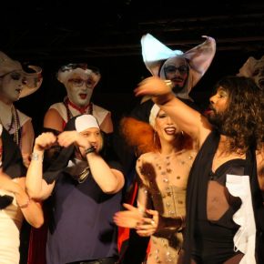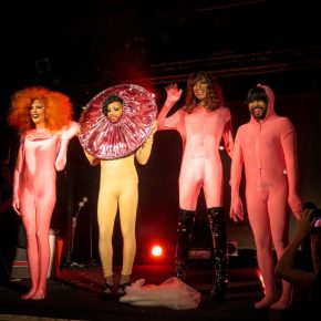 Je n’ai jamais parlé des Paillettes, c’est un collectif de Drag Queens parisiennes que j’aime beaucoup. Elles présentent régulièrement des shows reprenant le rôle de certaines drags militantes, avec par exemple des lectures de textes queers et féministes sur des thèmes donnés. Il y a aussi évidemment un peu d’humour potache et des splendides tenues, improbables perruques et maquillages extravagants pour couronner le tout. Pour la Pride, elles ont présenté un show génial « Des Paillettes dans la Capote » avec quelques Soeurs de la Perpétuelle Indulgence.