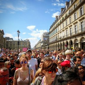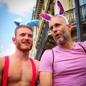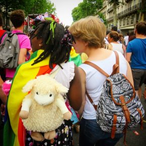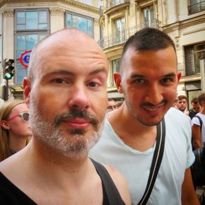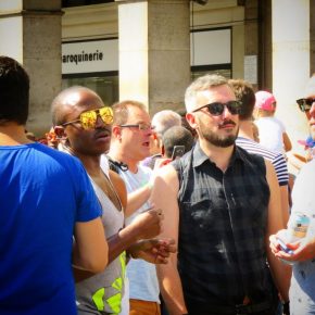 Et bien évidemment, j’ai participé à la Gay Pride parisienne. J’y tenais particulièrement car ma première c’était en 1997, donc cela faisait mes vingt ans de marche des fiertés, ce n’est pas rien !! J’ai aimé y voir du monde, plein plein de monde, des jeunes, des vieux, du degré de follitude et d’extraversion de 0 à l’∞, des filles et des garçons et tous les degrés entre les deux ou en-dessous ou au-dessus, des hétéros, des homos, des trans, des pan-poly-a-inter-cequetuveux, des gaminEs, des bears, des otters, des chubbies, des puppies, des cuirettes, des slaves en cuir et latex, des amis, des potes, des cousins, des connaissances, des accointances, des satellites, des perdus de vue, des connus de vue, des ex, des plans cul, des militantEs, des gens qui dansent, qui défilent, qui crient, qui chantent, qui se taisent pendant une minutes.