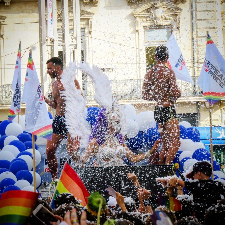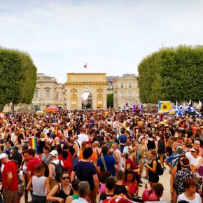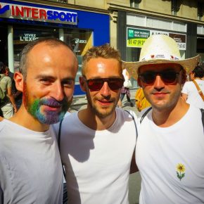 Et puis, cette année la grande nouveauté c’était le week-end à Montpellier pour voir ce que ça donne une Gay Pride 2017 réussie en dehors de Paris. Je connaissais bien quelques Prides européennes mais j’ai rarement eu l’occasion d’en faire une en dehors de la capitale. Montpellier était clairement le bon choix, étant donné que selon moi c’est la seconde ville gay de France après Paris. Il y avait du monde, il y avait du fun et du soleil ! Evidemment ce n’est pas un mouvement aussi impressionnant qu’à Paris, mais la manifestation a d’autant plus d’importance dans un endroit où vivre queer n’est pas aussi facile qu’à Paris (déjà que ce n’est pas toujours facile ici). On y retrouve un échantillon de tout ce que j’ai précédemment cité, et plus encore !! On est allé jusqu’au bout du trip puisqu’on est allé à la soirée officielle djayée par un DJ Kingstone qu’on a particulièrement aimé (pour la musique comme pour son physique avantageux).