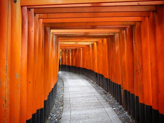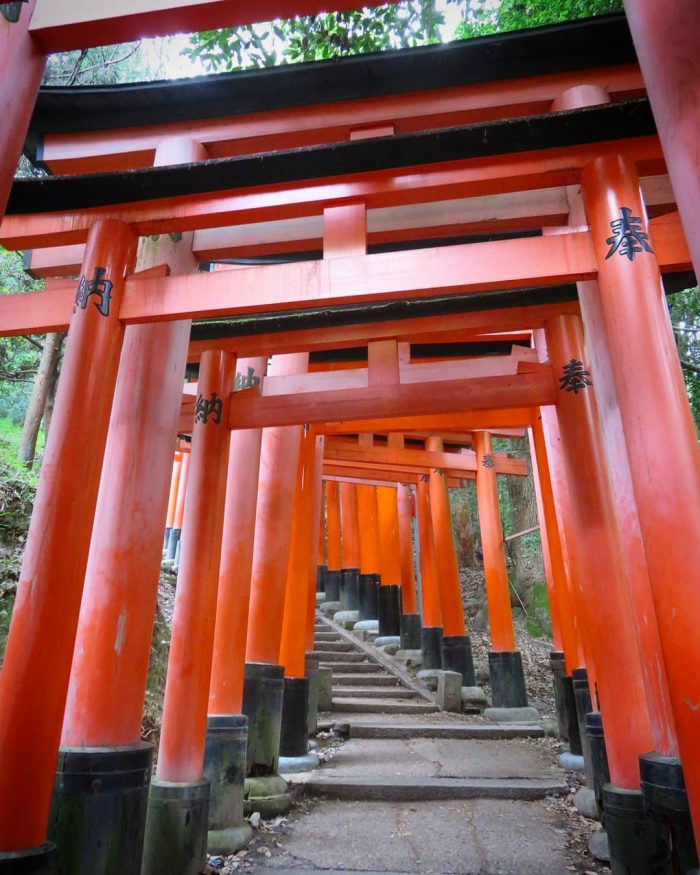 Enfin, il y a l’incontournable montée du Fushimi Inari-taisha qui est un sanctuaire gigantesque sur tout une colline escarpée. La particularité est d’être dédié à Inari donc une divinité qui a la forme d’un renard, et d’y voir des milliers de torii (les portiques rouges et noirs) qui sont financés par des entreprises ou des particuliers (cette déesse étant protectrice des commerces). Il faut quelques heures pour arriver au sommet avec quelques chemins de traverse, et ce ne sont que torii sur torri. Le site est blindé de monde, mais avec un peu de patience et simplement en grimpant (il y a de moins en moins de monde à mesure que l’on atteint le sommet de ce petit mont) on se retrouve avec une foule bien moins pressante et selfisante.