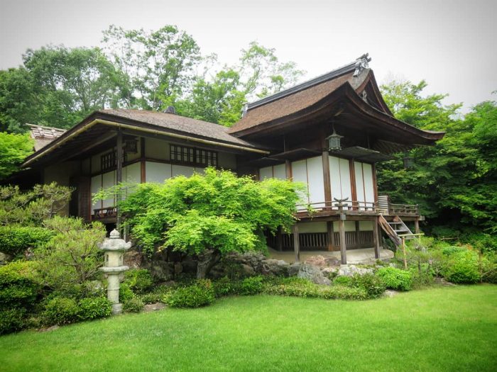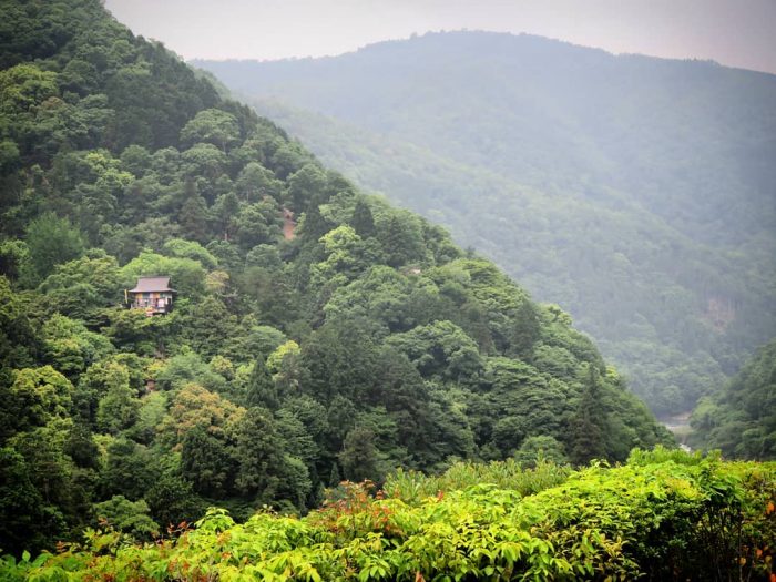 La villa Ōkōchi Sansō est l’ancien domaine d’un acteur japonais. C’est une visite assez mineure, mais j’ai vraiment bien aimé la verdoyance du jardin, et le cheminement qui est pavé et qui serpente entre des points de vue sur les collines de Kyoto. C’est très différent d’un temple évidemment, mais justement cela montre un usage différent des mêmes techniques et philosophie d’horticulture et de « décoration » de jardin.