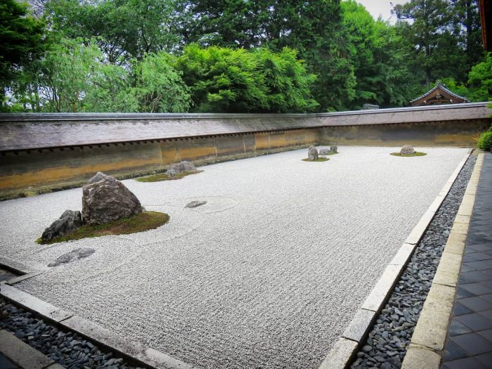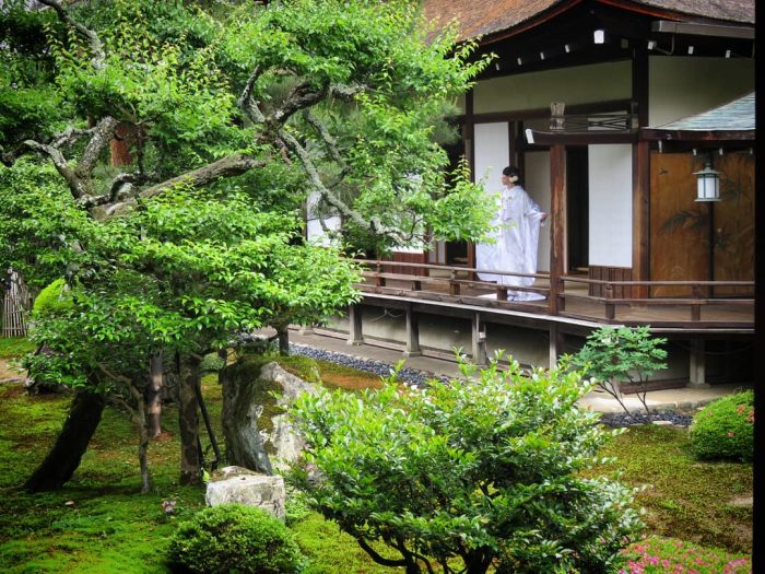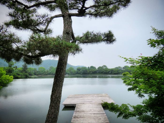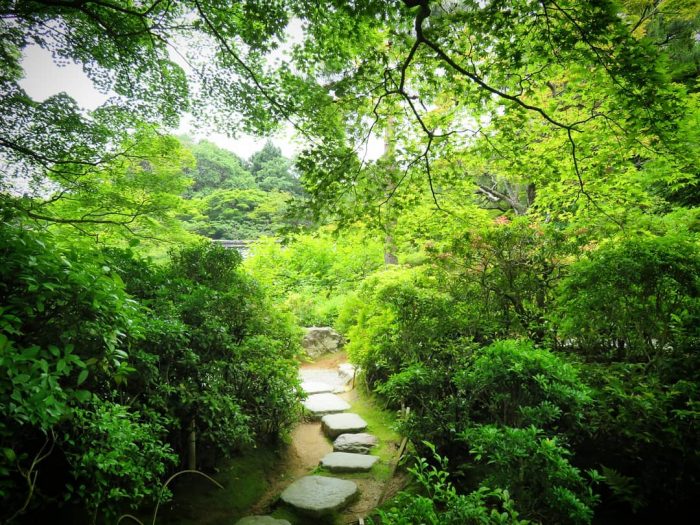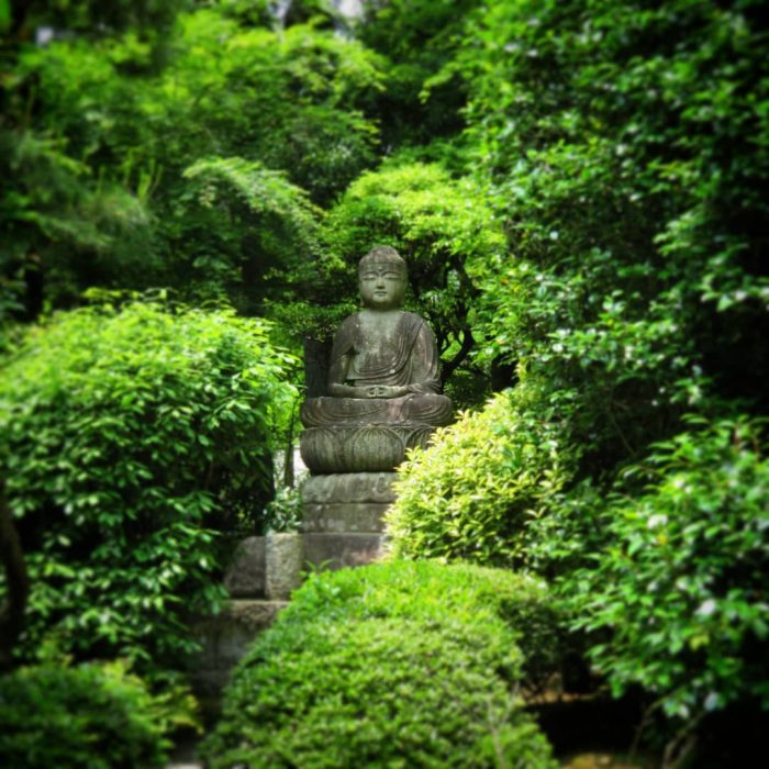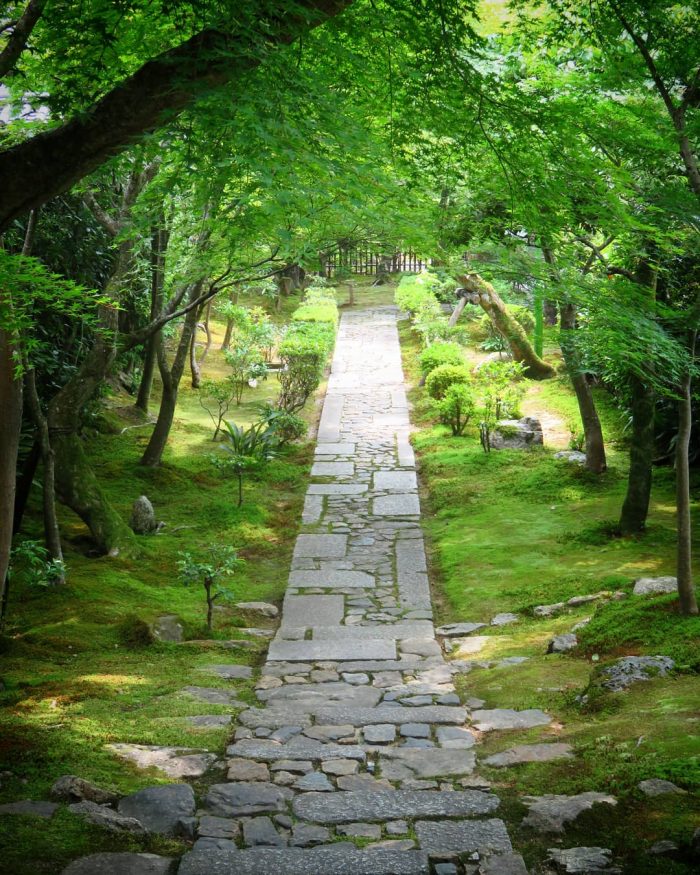 Des édifices qui se reflètent dans une mare, de la verdure en allant des mousses aux bambous, des chemins gravillonnés ou pavés, bref on s’attend à voir débarquer une bande de kodamas d’un moment à l’autre !!