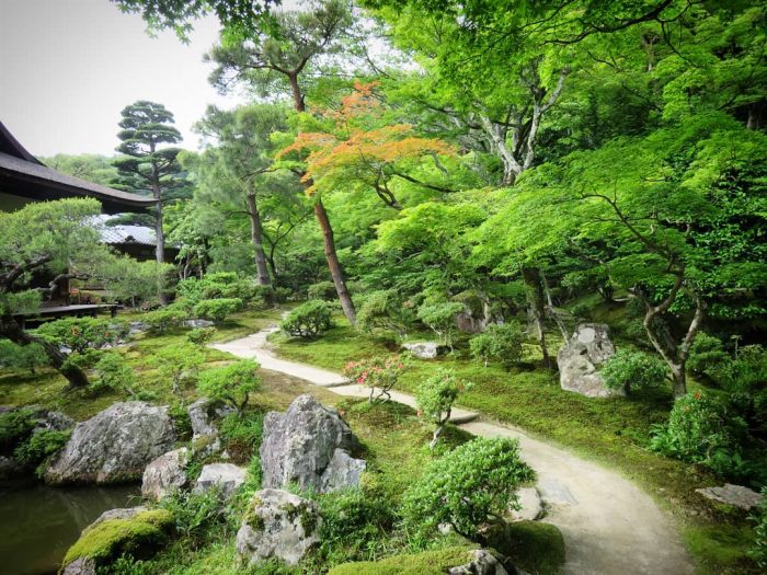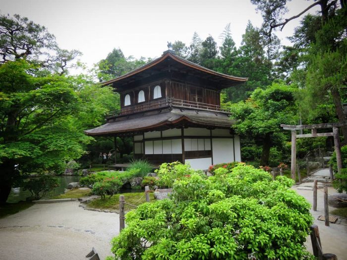Enfin le Pavillon d’Argent ou Ginkaku-ji est étonnant car il est tout à la fin du parcours, et il n’a rien « d’argent ». En revanche, c’est sans doute le plus beau jardin de Kyoto, et il dégage une harmonie assez extraordinaire tout en concentrant tous les gimmicks du jardin nippon. On y trouve notamment le Kō getsudai, un tas de sable qui représente le mont Fuji :