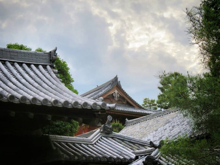 J’ai beaucoup aimé les perspectives des toits et la géométrie de toutes ces charpentes qui se croisent plus ou moins. Et surtout c’était le soir après la fermeture des temples, et donc c’était désert et d’un calme olympien. Je n’ai croisé personne jusqu’à la tombée du jour, et j’ai pu me perdre dans ce dédale pendant quelques heures fort agréables.