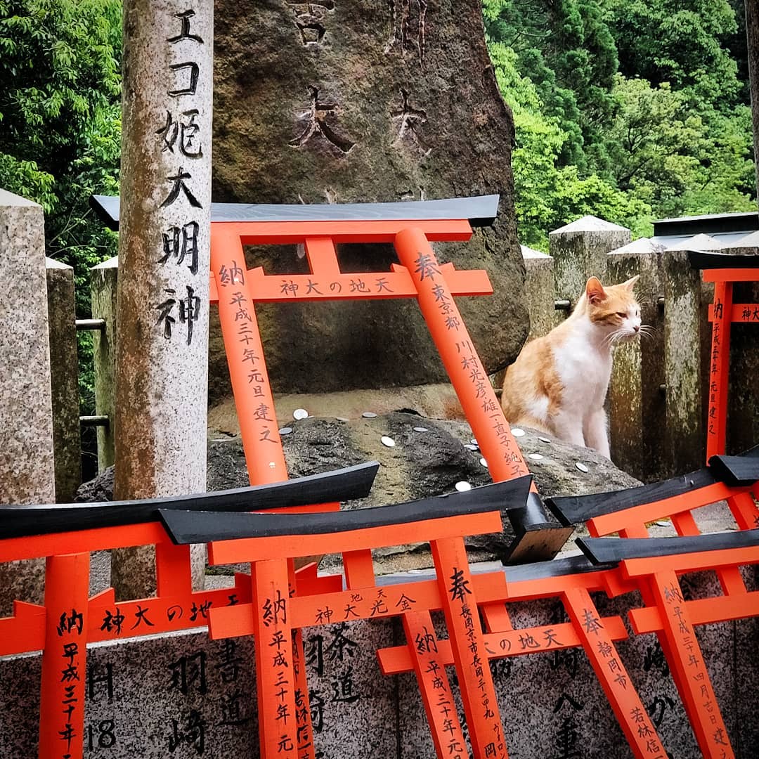 Il y a aussi pas mal de chats qui se baladent et qui ont l’air de trouver de quoi subsister parmi les offrandes et les torii (comme vous pouvez voir, de toutes les tailles !!).