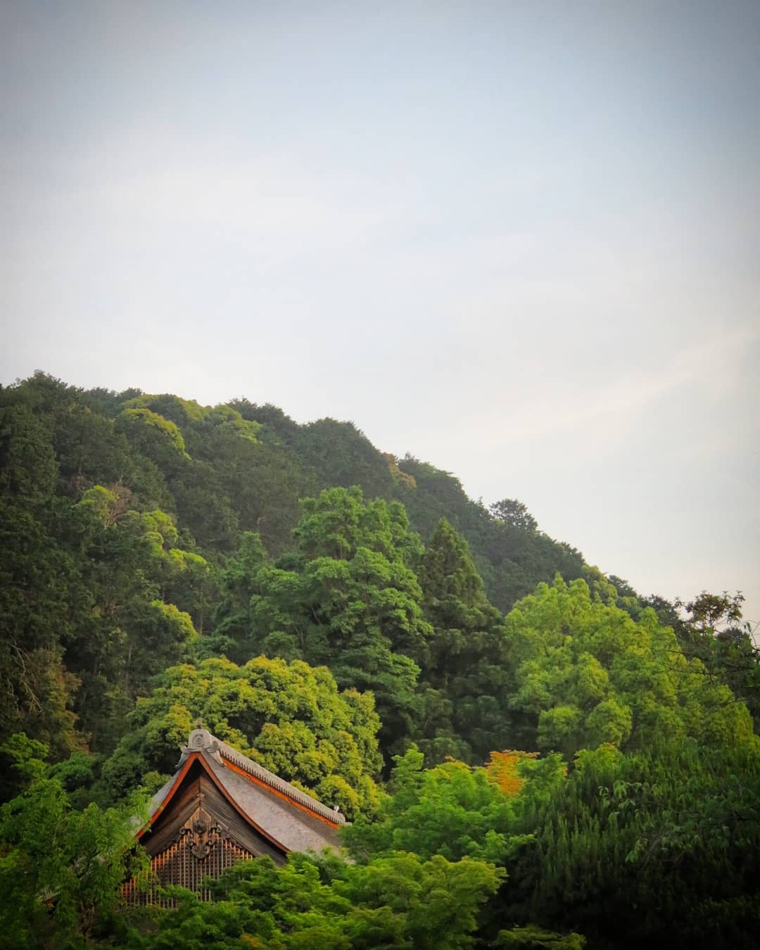 On bifurque de l’autre côté de l’édifice principal et là bammm, on est plongé dans une vision enchanteresse de verdure et d’un temple à étages (un tō, une pagode) qui complète merveilleusement le paysage.