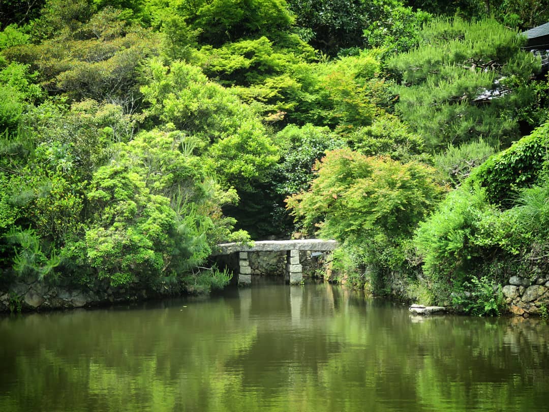 Des édifices qui se reflètent dans une mare, de la verdure en allant des mousses aux bambous, des chemins gravillonnés ou pavés, bref on s’attend à voir débarquer une bande de kodamas d’un moment à l’autre !!