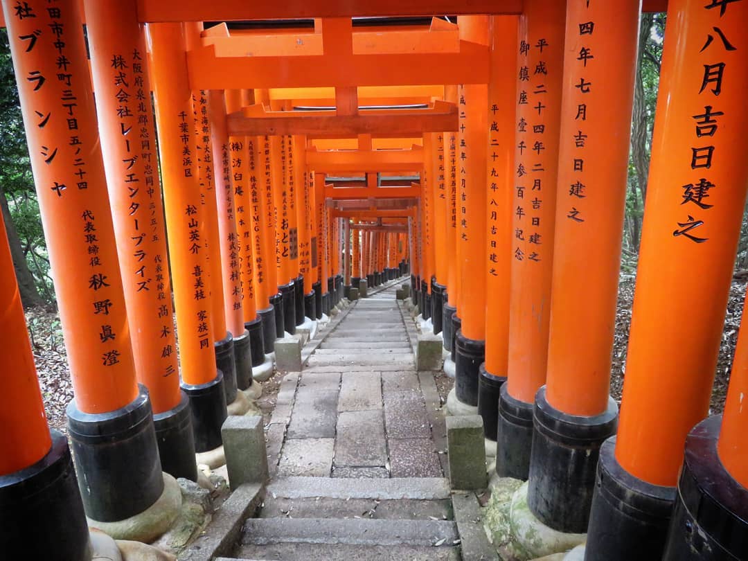 Ma vue préférée : quand les torii sont super rapprochés et que l’effet de perspective est le plus chouette (et que j’ai chassé les derniers touristes avec mon air le plus aimable).