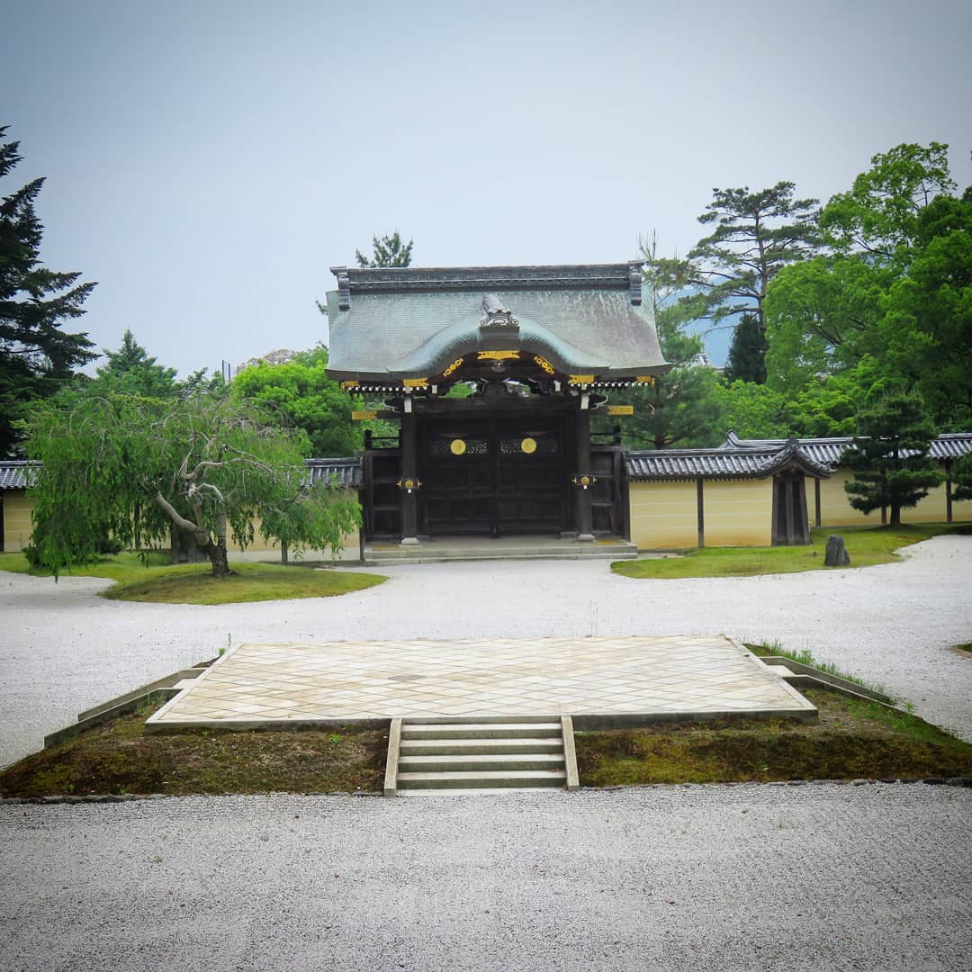Après c’était Ninna-ji que je ne connaissais pas du tout. C’est un ensemble assez remarquable qui mélange jardin zen, temples et promenades en bois surélevées. Du coup on a de très belles vues sur des étendues de pierres dont la symétrie fait bien plaisir à certains. Mouahahahaha.