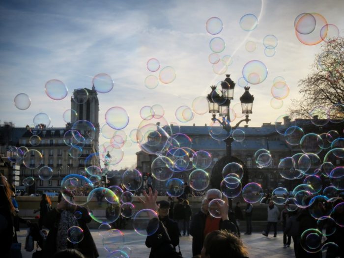 Mais le plus chou ce sont les gamins qui courent après les bulles pour les attraper. Ils avaient les regards les plus émerveillés du monde. C’est marrant de se dire que de l’eau savonneuse reste encore aujourd’hui (et depuis l’Antiquité) un outil de divertissement des plus efficaces pour les enfants (et les adultes).