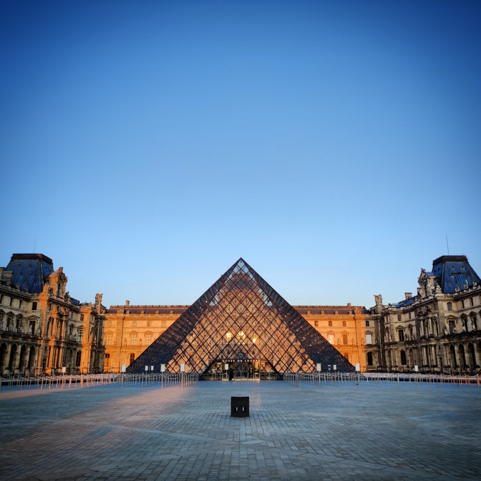 Malgré tout je n’avais jamais vu cette place aussi calme et vide. Et ce ciel si pur et dépollué, c’est extrêmement troublant. Et lorsqu’on se retourne, on est face au Carrousel et son parfait alignement avec l’obélisque de la Concorde, l’Arc de Triomple, et plus loin l’Arche de la Défense, jusqu’à Cergy-Saint-Christophe (et la boucle est bouclée me concernant ^^ ).