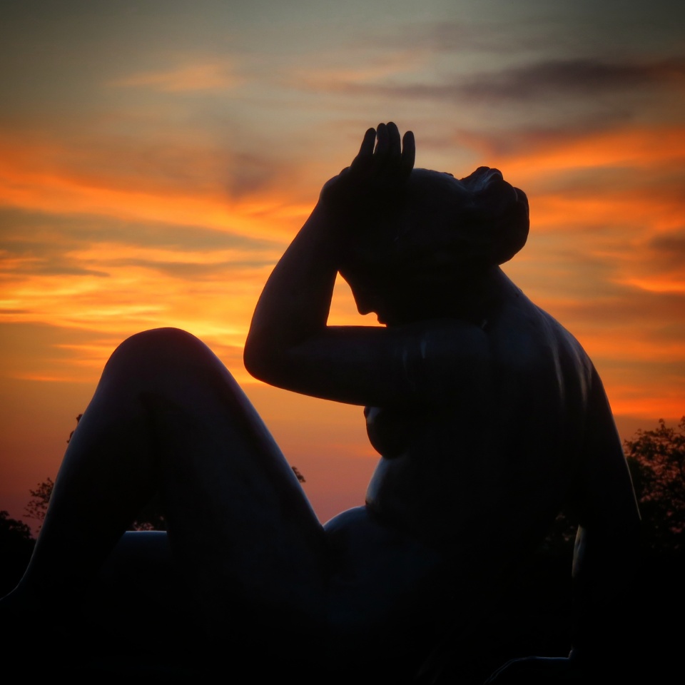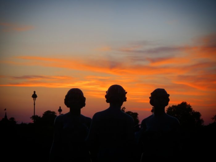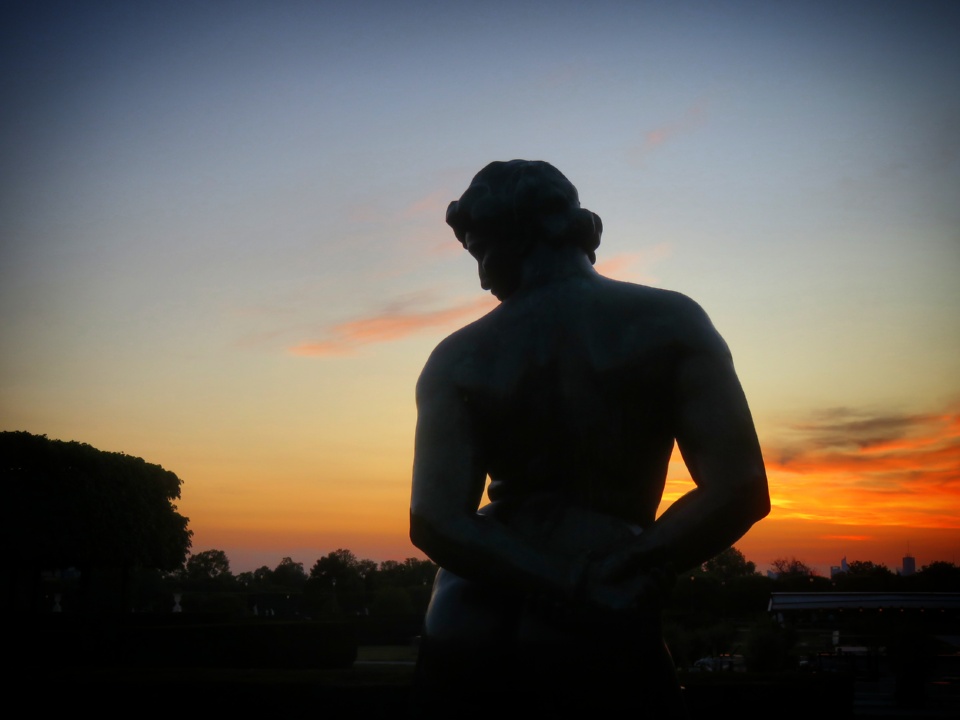 Après le coucher du soleil, on a continué notre balade en remontant par la partie labyrinthique. Il y a plein de superbes sculptures en bronze de l’artiste Aristide Maillol que j’aime beaucoup, et les ombres de ces personnages rendent merveilleusement bien, découpées sur sur un ciel couché multicolore.