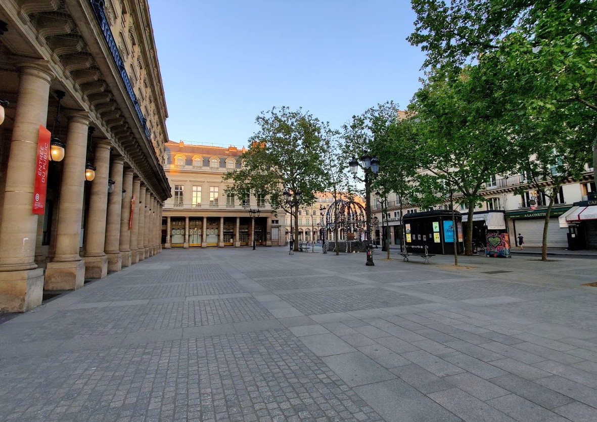 Même ambiance quand on regarde du côté de la jolie Place Colette devant la Comédie Française, pas un chat ni un pigeon. Un ambiance à la 28 jours plus tard.