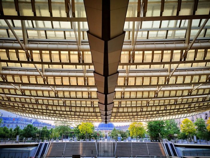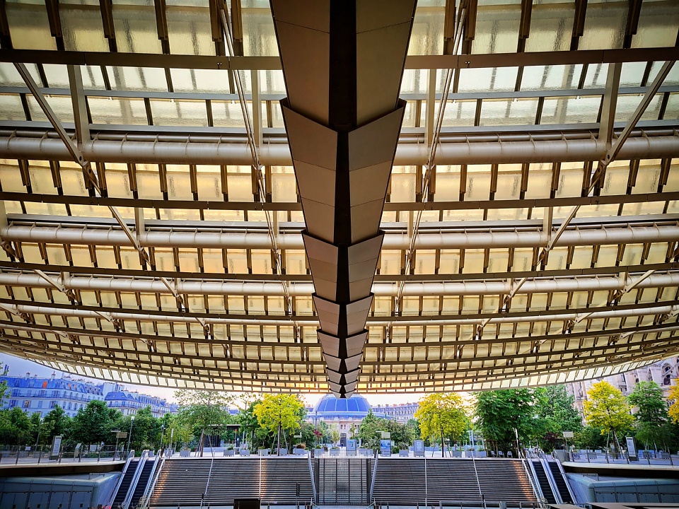 A quelques encablures de là, ce sont les Halles à proprement parler, et surtout la Canopée qui est le nouveau marqueur architectural du quartier. J’aime beaucoup ce que les Halles sont devenues, contrairement à beaucoup d’autres gens qui trouvent que c’est une archi trop lourde et écrasante. Et pourtant ils ont raison, c’est vrai que c’est une ossature loin d’être aérienne, mais j’aime son squelette et sa colonne vertébrale métalliques. Et complètement vidée, elle a plutôt de la gueule selon moi.