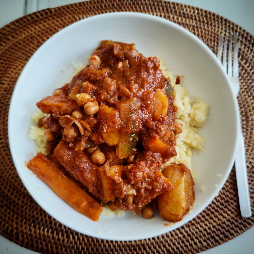 Je n’en avais jamais fait, et mon père n’est jamais assez patient ou disposé pour me donner correctement la recette et surtout le modus operandi, ce qui pour un béotien comme moi est vraiment essentiel. Heureusement mon amie F. fait un couscous (algérois, à priori) que j’adore, et qui est vraiment similaire à celui de mon papa. Elle m’a donc donné lors de notre dernier apéro en videoconférence tous les ingrédients et les explications.