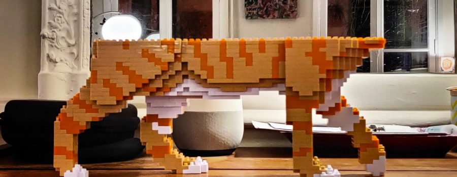 J’avais ironisé en janvier sur ce modèle d’Arya que chérichou était en train de construire. On aurait dit un chat en cours de chargement sur minitel dans les années 80 (sauf que ça chargeait par le haut de la page…). On remet ça avec Sookie. Je plussoie