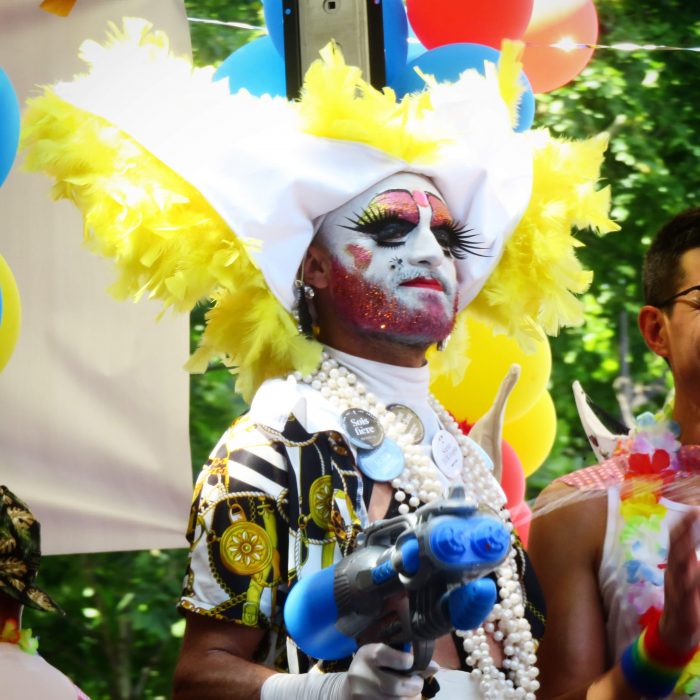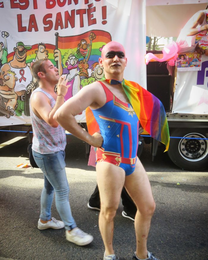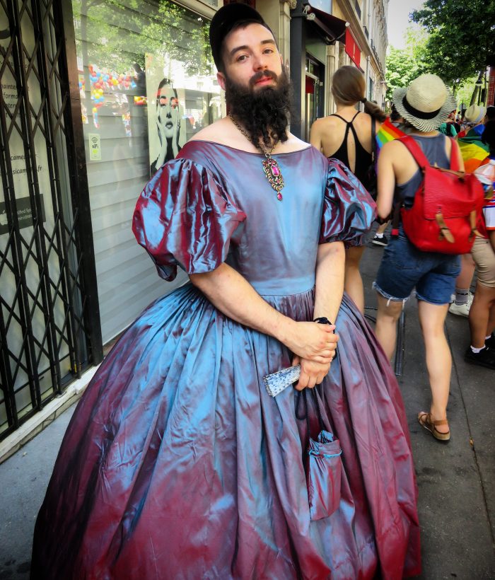 Cela a toujours été important pour moi, je pense que c’était d’abord une réminiscence des combats syndicaux de mon père, et cette forme de lutte en manifestant, mais aussi l’assurance d’une belle visibilité dans l’espace public. Outre cela, la Marche des Fiertés représente le mélange le plus génial de tout ce qui est « Queer », en commençant d’abord par les nombreux alliés hétéros bien sûr, et toutes les franges, sans en exclure aucune, car toutes celles qui veulent en être sont les bienvenues. Il n’y a rien de choquant à la Pride, ce n’est que la simple expression de la liberté d’être soi, singulièrement soi, dans un ensemble bigarré et multiple, dans une même joie de marcher et danser ensemble. Car la Marche des Fiertés, c’est aussi une fête de l’amour de soi et d’autrui, un remue-popotin politisé avec de la musique et du maquillage et toutes les fringues qu’on veut, du lycra, du cuir, du latex, du coton, ou presque à poil si on veut ! J’adore ce gros bordel organisé qui reste le porteur d’un message politique fort, tout en reprenant l’origine même de Stonewall en 1969, et donc faire la fête tous ensemble en étant juste nous.