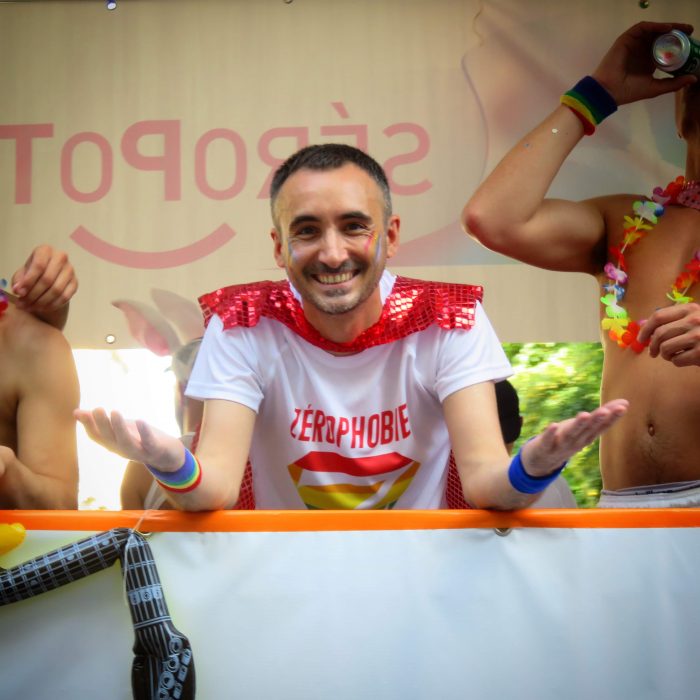 Ah ah, et mon Seb préféré sur son char des PopinGays, ça donne une très chouette photographie je trouve. J’adore son sourire là-dessus.