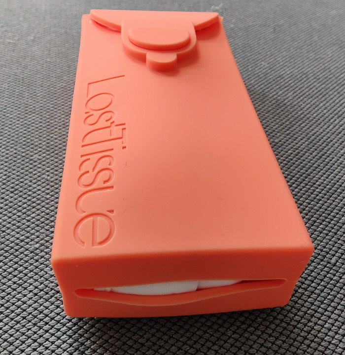 Mais là voilà le truc. Cette boite danoise (Tak Babette !) a inventé le paquet de mouchoirs à usage unique mais réutilisables. J’ai reçu les 3 paquets que vous voyez en tête d’article, et qui sont en silicone. Chacun contient 6 mouchoirs en coton qui sont donc parfaitement lavables. Le principe est le suivant, vous avez une fente vers le bas qui permet d’attraper un mouchoir propre en le tirant bêtement.